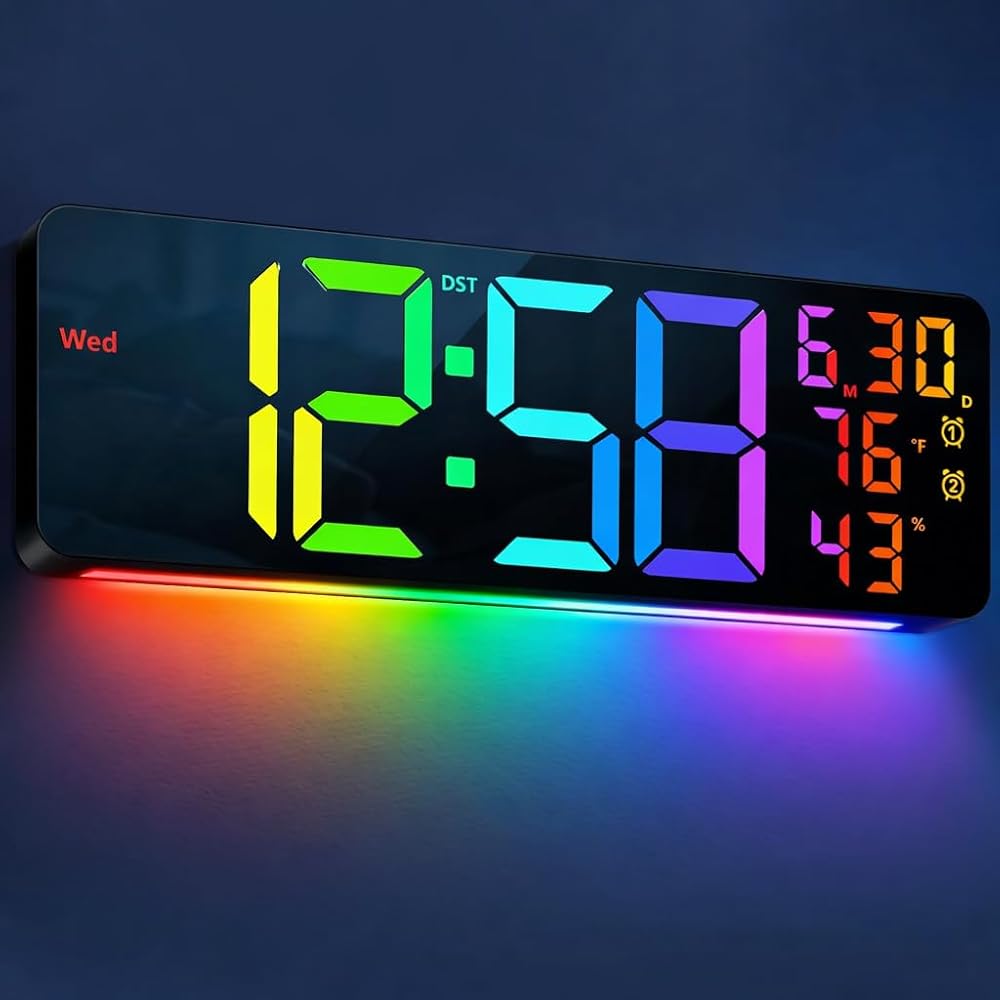 Mashi 17.6 "ساعة حائط رقمية كبيرة ، ساعة رقمية مع التحكم عن بعد ، الإنذار ، LED كبير ، 11 RGB ، DST ، درجة حرارة مكتب غرفة المعيشة ، غرفة نوم ، ديكور ، هدية للمسنين