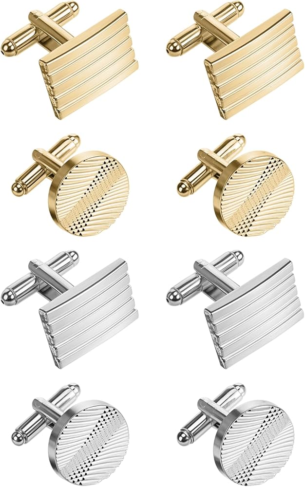 【Package Included】The exquisite buttons set contains 4 pairs of cuff links in different styles. This stylish and simple cufflinks can be perfectly matched with different shirts, so that your buttons can maintain the most charming appearance and never go out of style. The simple and classic design makes men's clothing accessories suitable for various formal occasions, making you more handsome in the crowd.