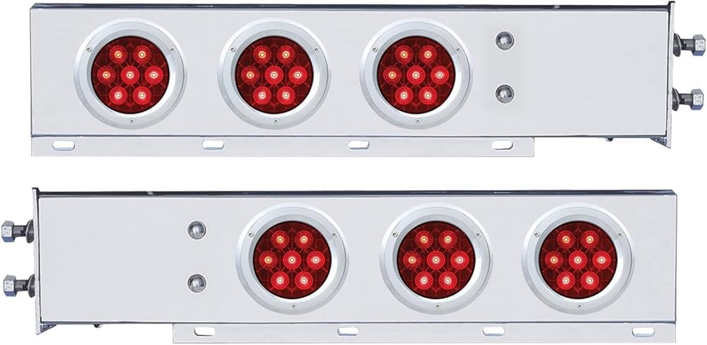 United Pacific 61762 SS Series Pring Spring Loved Love Bar مع نمط الترباس 2.5 بوصة ، وضوء توقف/انعطف ، و LED الأحمر والعدسة ، وزوج ، مع إطار مسطح Chrome ، 7 LED لكل ضوء