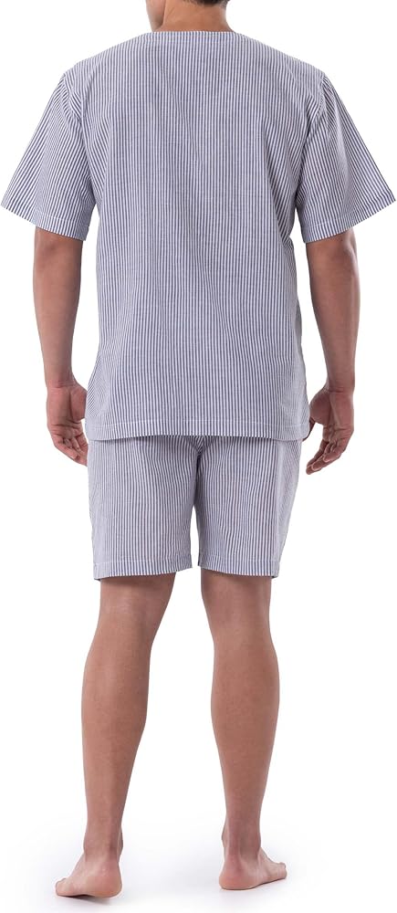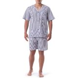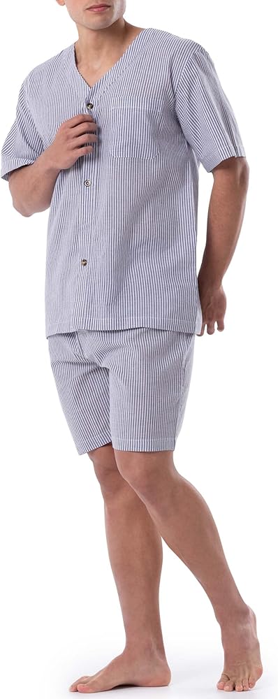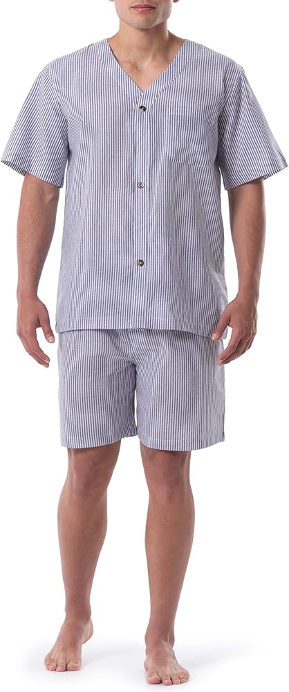 • يشتمل على قميص قصير الأكمام بأزرار أمامية وسروال قصير متوسط ​​الطول بخصر مطاطي