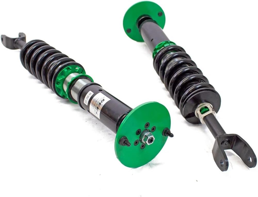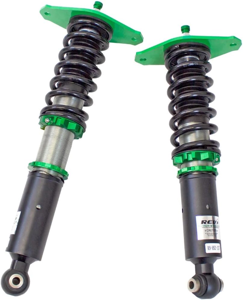 Hyper-Street II coilover suspension upgrade features mono-tube shocks with 32 clicks rebound settings and full length adjustable. Mono-tube shocks provides larger capacity for gas and oil to improve comfortable level of typical lowering vehicle. Special 32 clicks of valving allows user to fine tune rebound force settings. Independent spring tension and full length adjustable allows drop without sacrifice comfort by shorten pitch distance.
