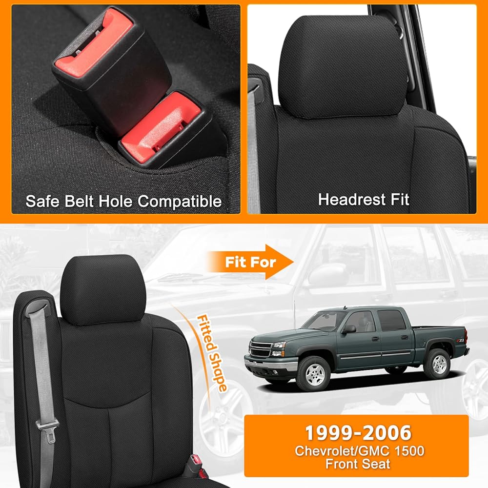 متوافق مع: 1999 2000 2001 2002 2003 2004 2005 2006 CHEVY/GMC 1500 Front SEAT. مما يجعلهم خيارًا مثاليًا للمالكين الذين يتطلعون إلى حماية وتعزيز الداخلية من سياراتهم.