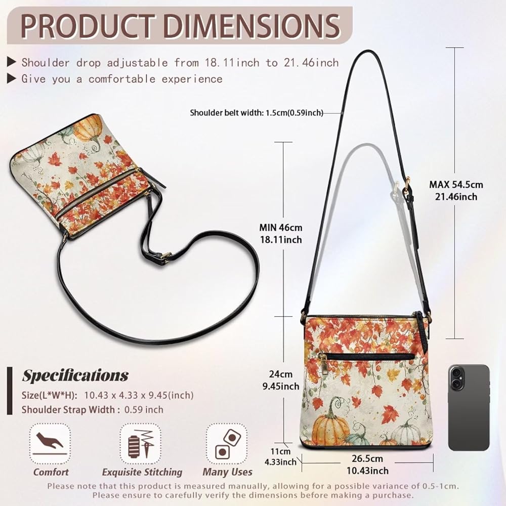 محفظة Crossbody قابلة للتعديل: هذه حقيبة كبيرة من الجسم المتقاطع والأبعاد هي 10.43 "L x 4.33" W x 9.45 "H. حزام الكتف قابل للتعديل من 18.11 بوصة إلى 21.46 بوصة.
