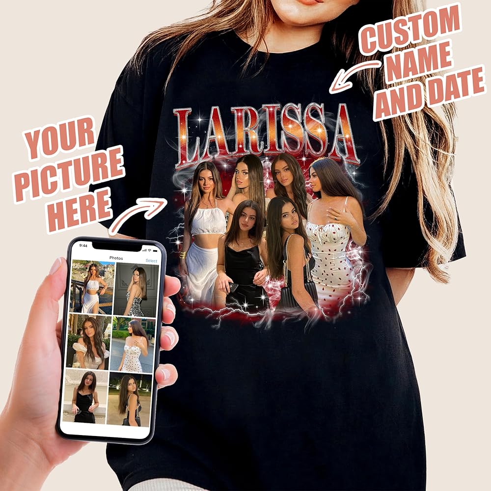 قميص الصور المخصصة: التعبير عن أسلوبك الفريد مع صديقتنا المخصصة لصديقها ، وعرض صورك الخاصة ونص مخصص. الغوص في الحنين إلى التسعينيات من القرن الماضي مع تصميم جرافيك عتيق يشيد بالعصر الذهبي للراب. تبرز من بين الحشد وأطلق العنان لإبداعك مع Tee Bootleg Rap المخصصة.