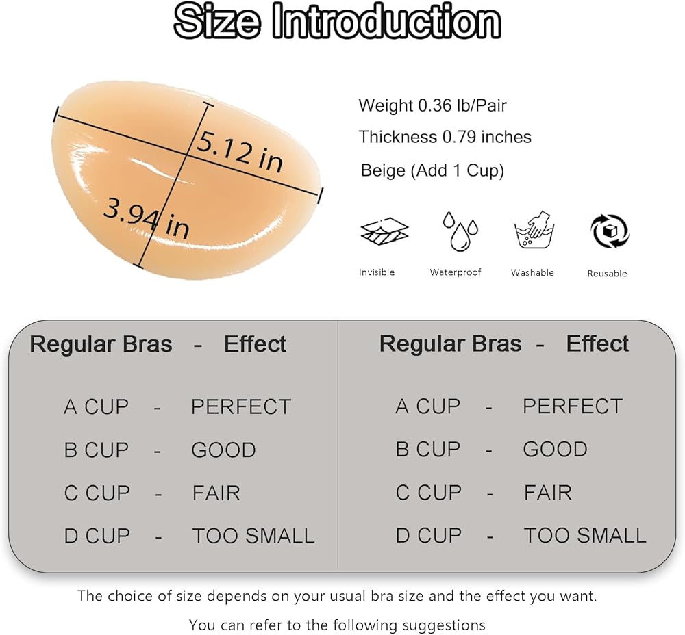 • يتضمن زوجًا واحدًا من إدراج البيج - يتضمن كل طلب زوج واحد من إدراج السيليكون البيج الذي يمتزج بشكل طبيعي مع لون بشرتك. من السهل تنظيفها وقابلة لإعادة الاستخدام ، هذه الإدراج هي إضافة لا بد منها إلى خزانة ملابسك للثقة والأناقة دون عناء.