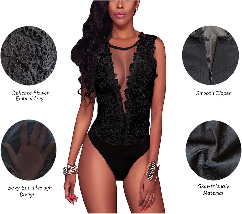 تصميم مثير وأنيق: تتميز القمصان المثيرة للنساء بتطريز دانتيل رقيق ورقعة من القماش الشبكي الناعم في الأمام والخلف شفافة ومفتوحة، هذا السالوبيت النسائي يمثل القدر المثالي من الإثارة دون أن تشعر بأنك مكشوف. كما أنه يصنع الأصلي بدلة سوداء بسيطة خاصة وفريدة من نوعها.