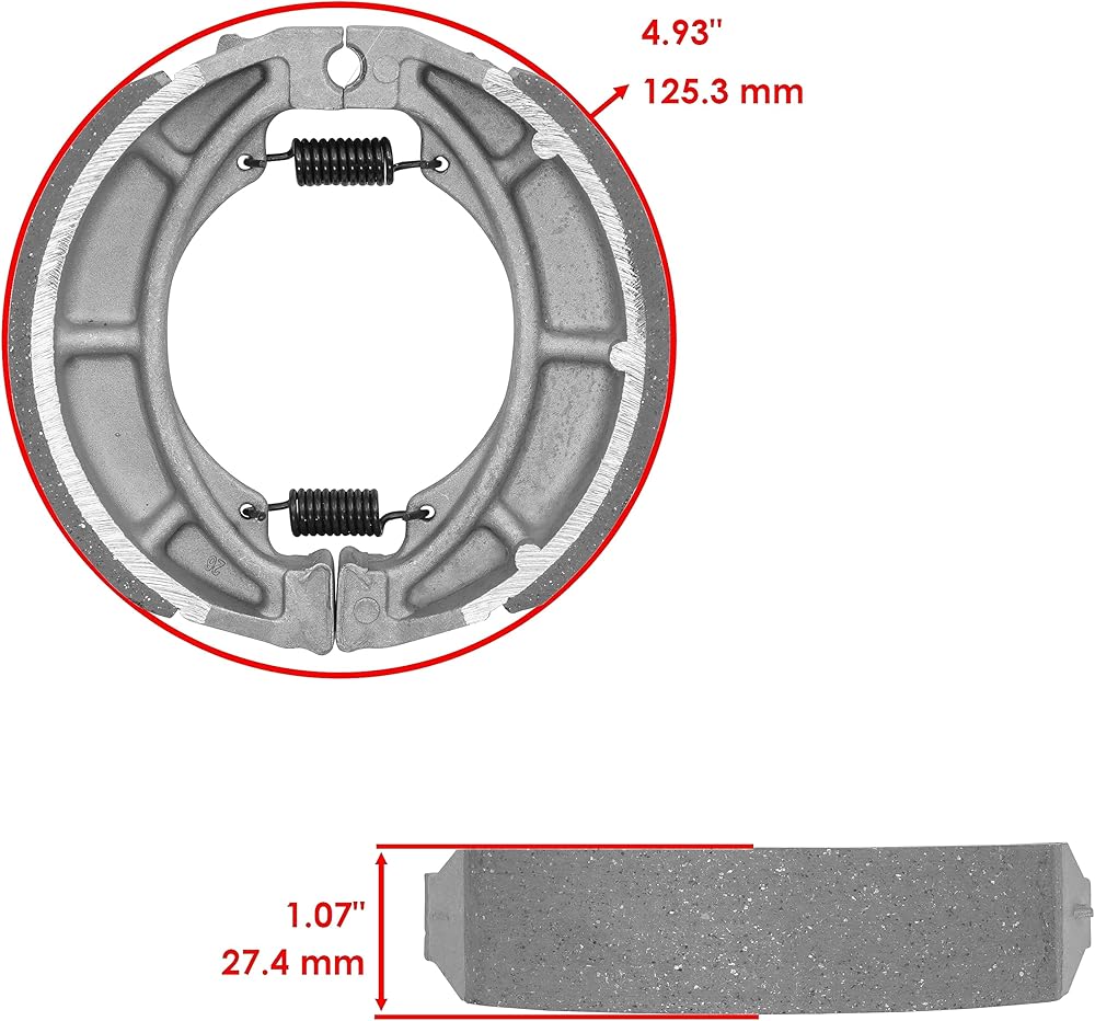 - Dimensions Brake Shoe: Length: 121 mm / 4.76" , Width : 27.4 mm / 1.06" , Height: 5.6 mm / 0.2"