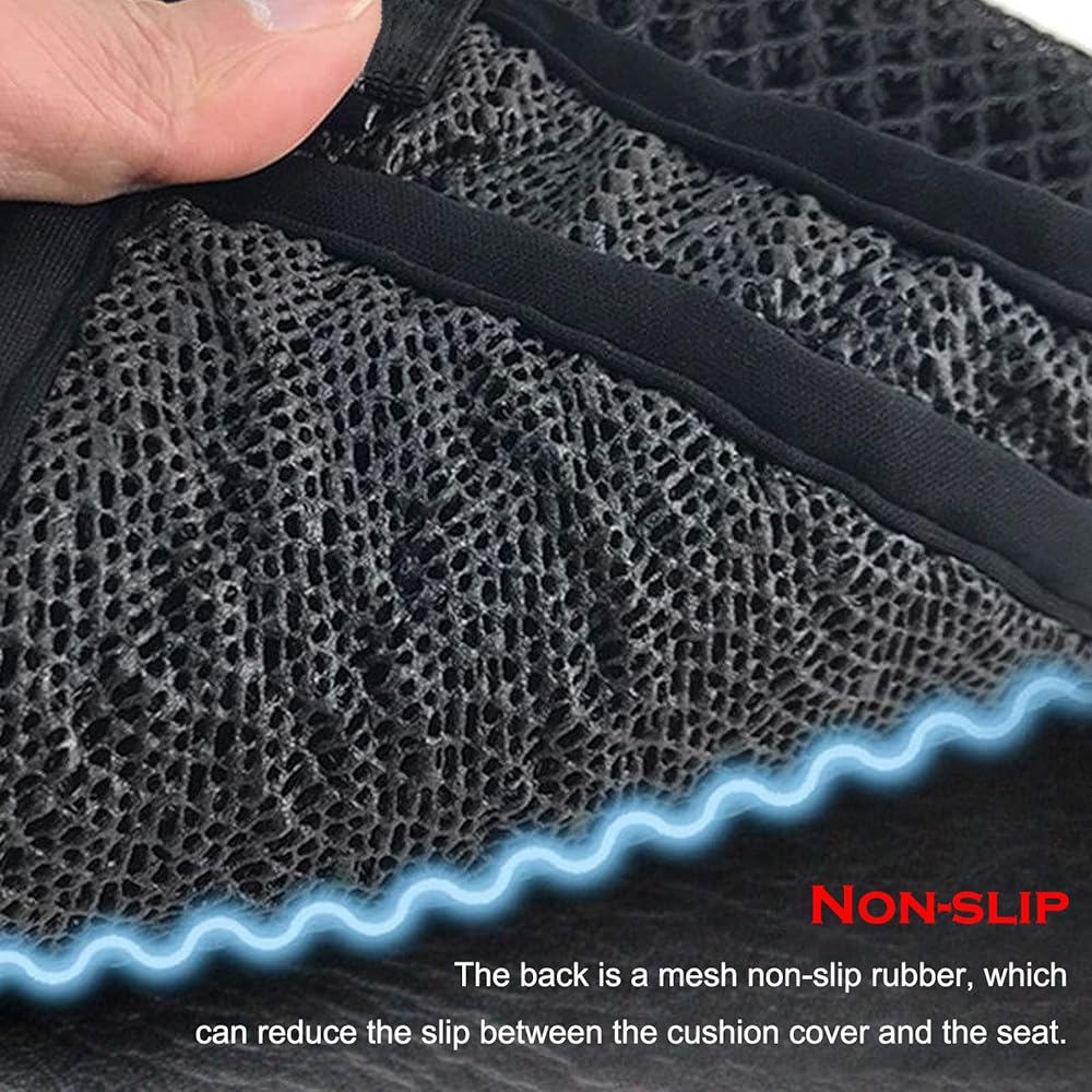 تم إحراز الجزء الخلفي من الغراء المضاد للانزلاق ، مما يقلل من الانزلاق بين غطاء المقعد والمقعد ، ويجعل الركوب فوق الانحناء أكثر أمانًا.