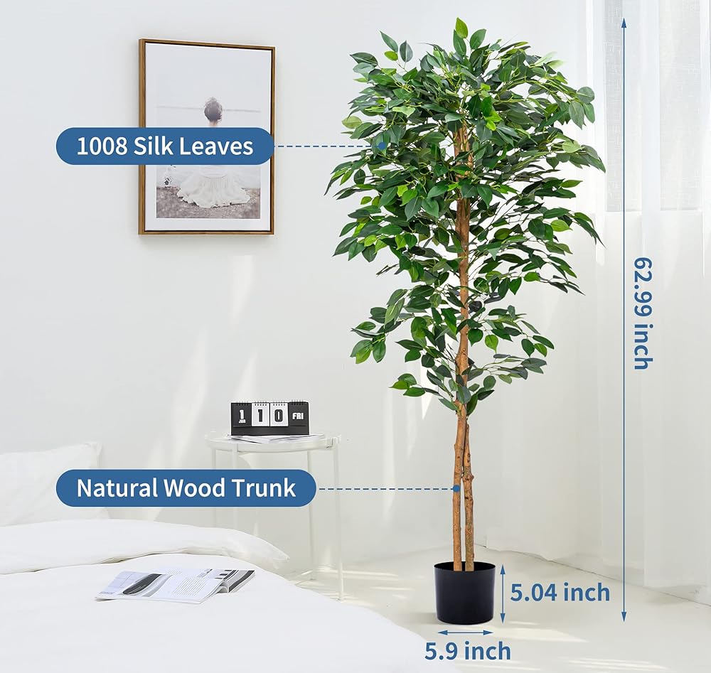 أشجار الزيتون الاصطناعية النباتات المصطنعة النباتات المزيفة المزيفة الأشجار الاصطناعية مع أوراق الحرير وعاء الحضانة ، والنباتات المزيفة لديكور المنزل (شجرة ficus ، 5ft-1pack)