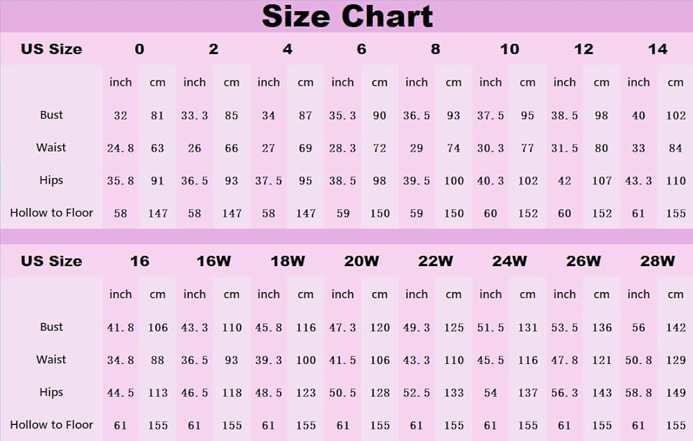 Size 24W: Bust=51.5 Waist=45.5 Hips=54 Hollow to floor=61;