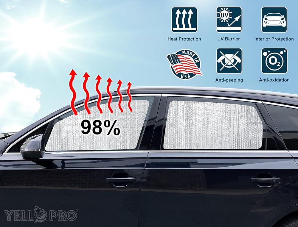 - يقلل من درجات الحرارة الداخلية خلال النهار في المركبات المتوقفة بمقدار 40 درجة فهرنهايت (20 درجة مئوية) أو أكثر.