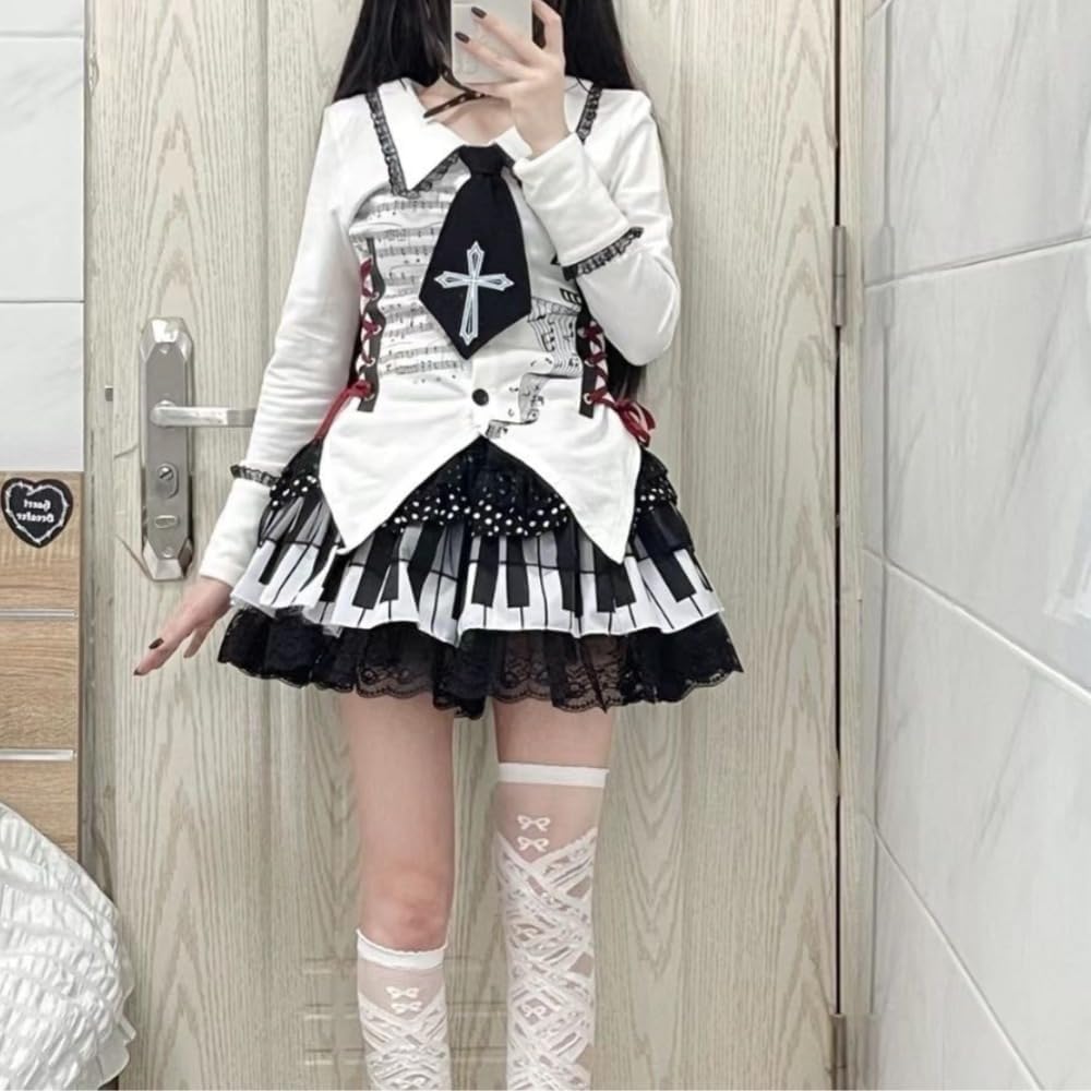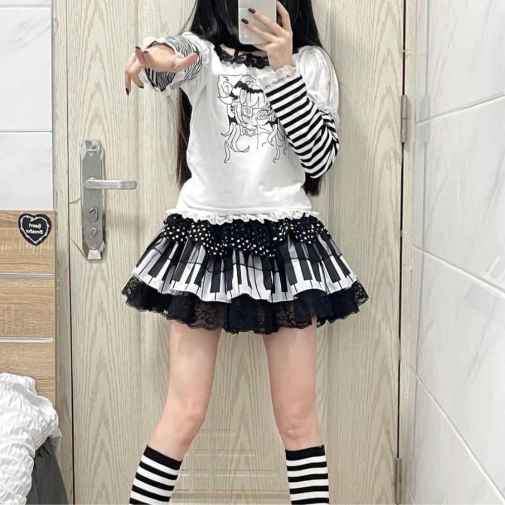 Wear: تتضمن التنورة خمسة أحجام لتلبية احتياجات مختلف أجسام النساء ، يمكن لتنورة ألوان اللون بالأبيض والأسود أن يرتدي القمصان ، وقمم المحاصيل ، وقمم الخزانات ، والمعاطف ، والسترات.