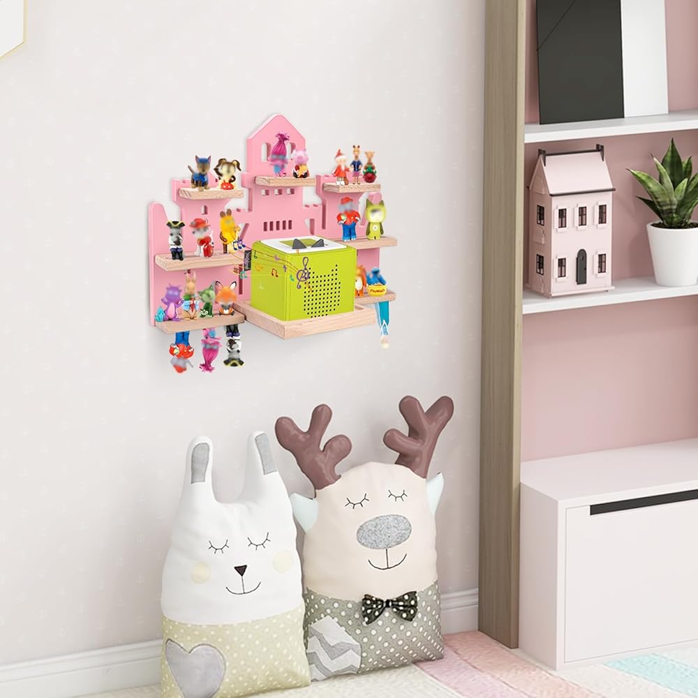 Fun Castle Design: يتميز رف Tonie هذا بصورة ظلية قلعة كلاسيكية تتضاعف كفن جدار مزخرف عند تثبيتها. عروض التصميم متعددة الاستخدامات هي حلول تخزين Tonies مثبتة على الحائط لمطابقة أي مساحة