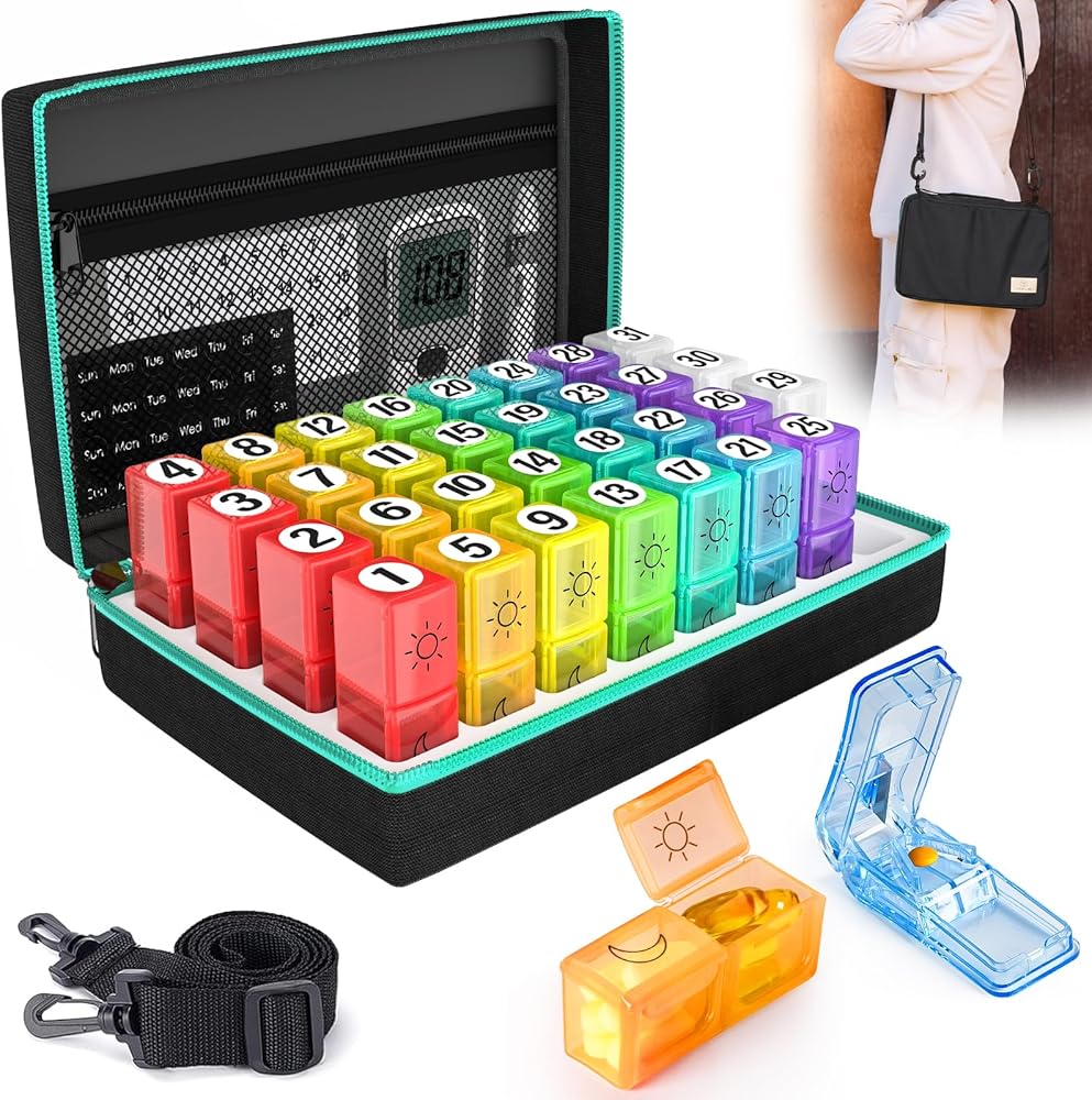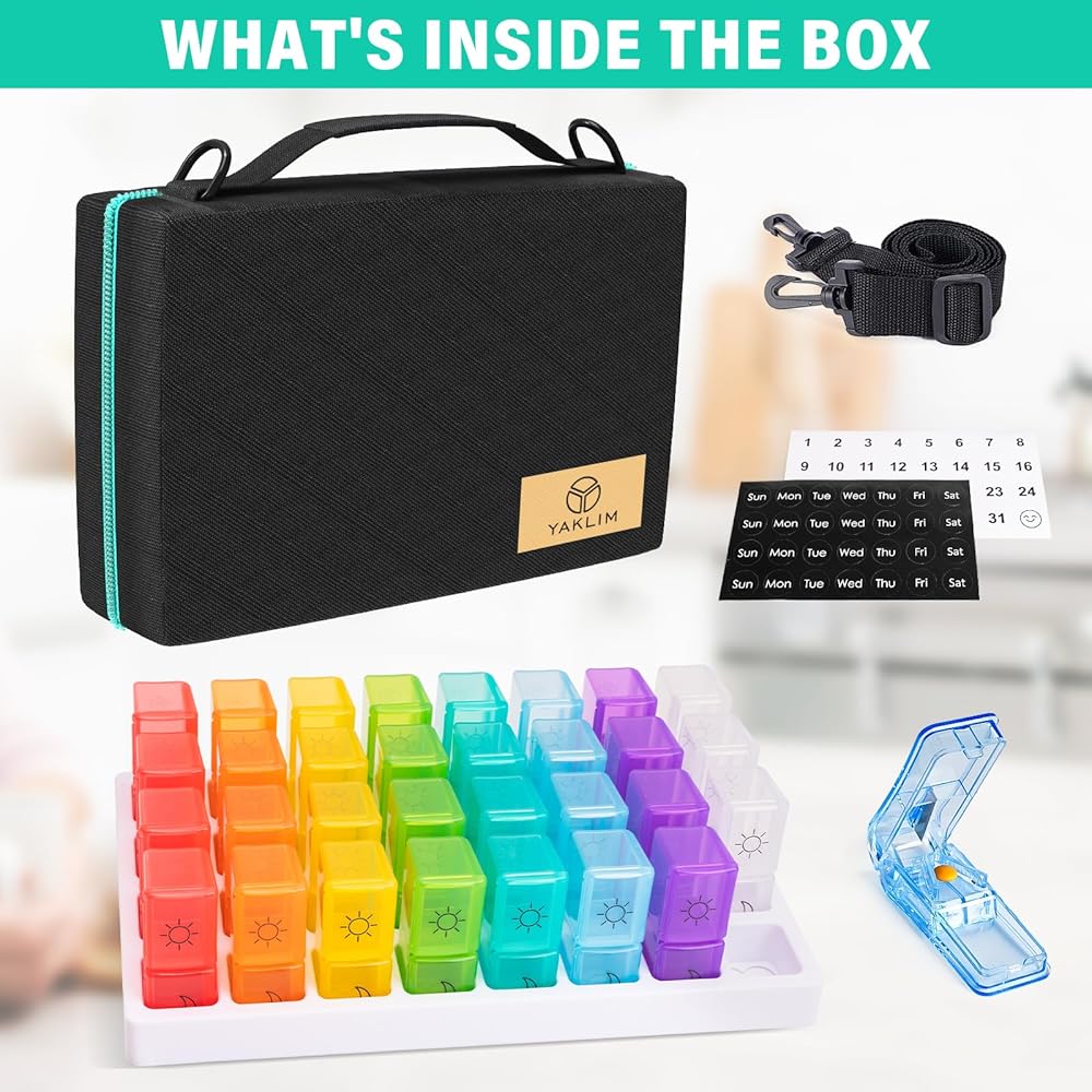 【مع قطع حبوب منع الحمل وملصقات تذكير】 يأتي منظم صندوق حبوب منع الحمل اليومي مع قاطع حبوب منع الحمل يتيح لك تقسيم الحبوب بدقة إلى نصفين أو أرباع. بالإضافة إلى ذلك ، تتضمن مجموعة صندوق حبوب منع الحمل 31 يومًا أرقامًا شهرية وملصقات لمدة 4 أسابيع تتيح لك تحديد الأدوية الخاصة بك بسهولة وتتبعها. قل وداعا للجرعات الفائتة والحفاظ على عاداتك الصحية.