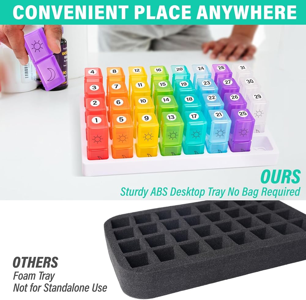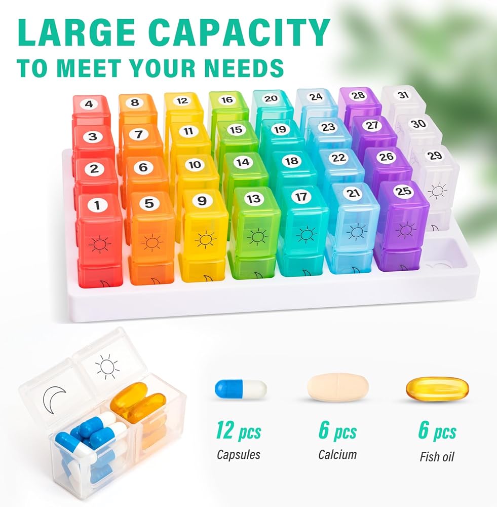 【سعة كبيرة وتصميم بديهي】 AM PM PAL COMMERIZER كل مقصورة توفر مساحة كبيرة لتخزين حبوب منع الحمل أو الفيتامينات أو المكملات الغذائية ، وهي مثالية لأولئك الذين يديرون مجموعة متنوعة من الأدوية. تم تصميم المنظم لأتناول الدواء مرتين في اليوم (صباحًا/مساءً) ، ويسمح لك الغطاء الشفاف برؤية المحتويات في لمحة دون فتح كل مقصورة ، وضمان الراحة والكفاءة في حياتك اليومية.