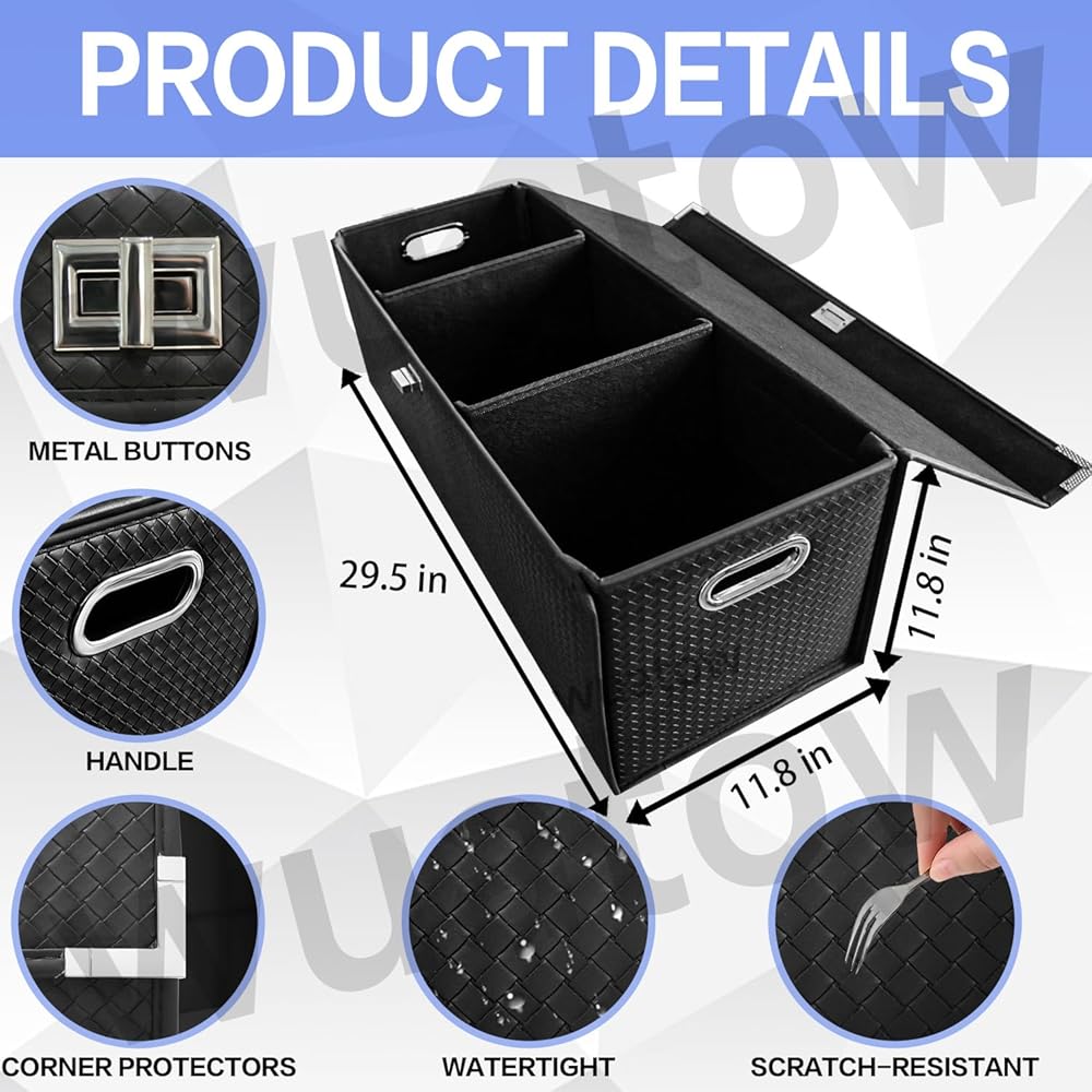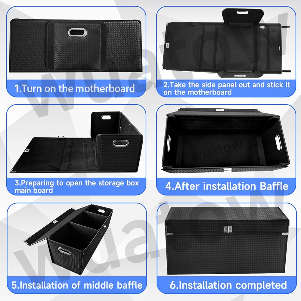 [تصميم قابل للطي] - يتبنى منظم جذع Wuatow Car تصميمًا قابلًا للطي ، وتوفير مساحة جذع عندما لا تكون قيد الاستخدام. يمكن لصندوق تخزين السيارات المغطى أن يمنع الغبار ويحمي خصوصيتك. الجذع منظم التخزين هو عناصر أساسية للسفر النظيف