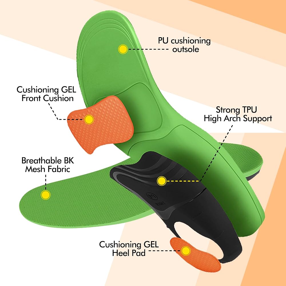 دعم القوس المريح: يقدم تصميم "المثلث الذهبي" النعال دعمًا ثلاثة نقاط ، ويعمل مع طوق مبطن لمنع إصابات المفاصل وتخفيف التهاب اللفافة الأخمصية