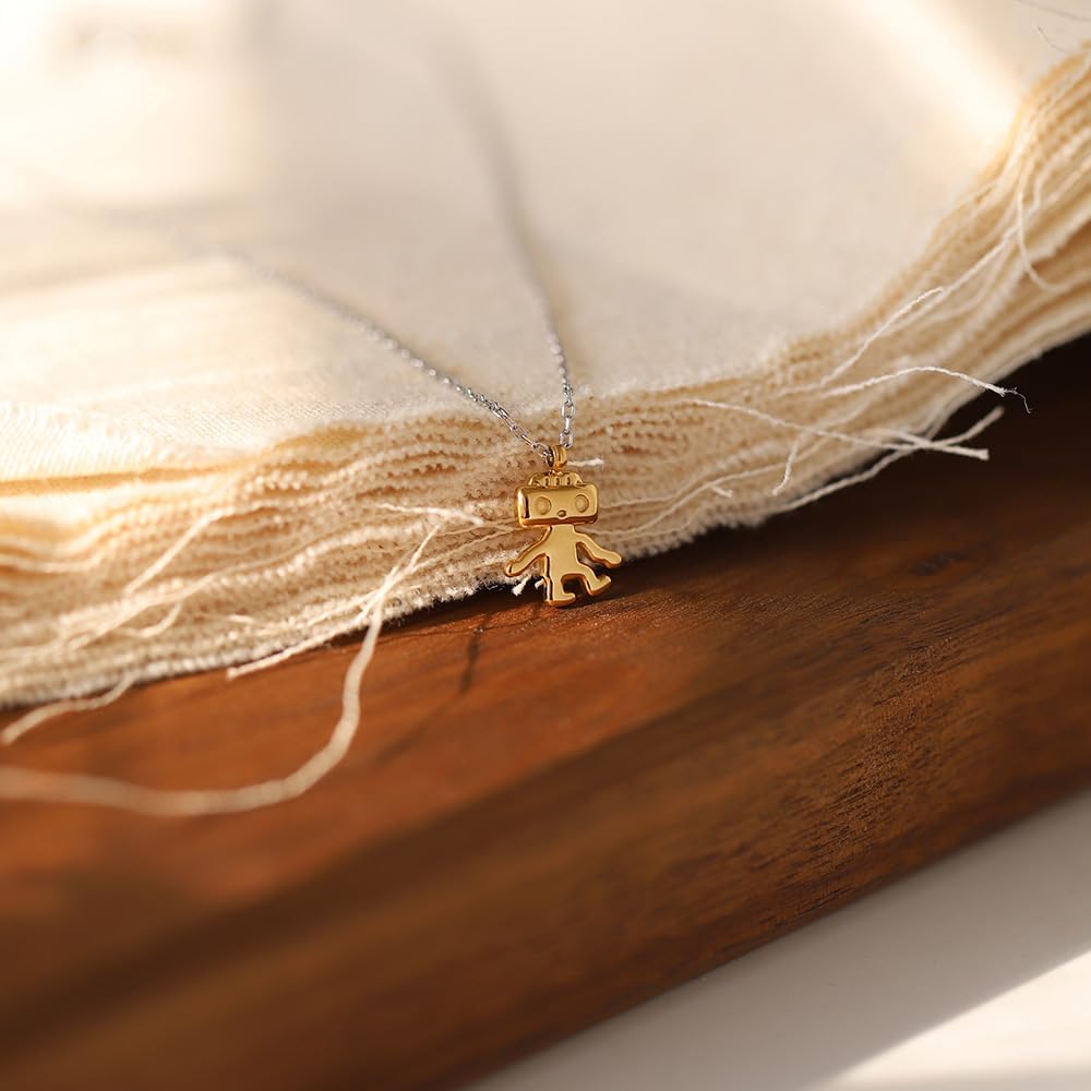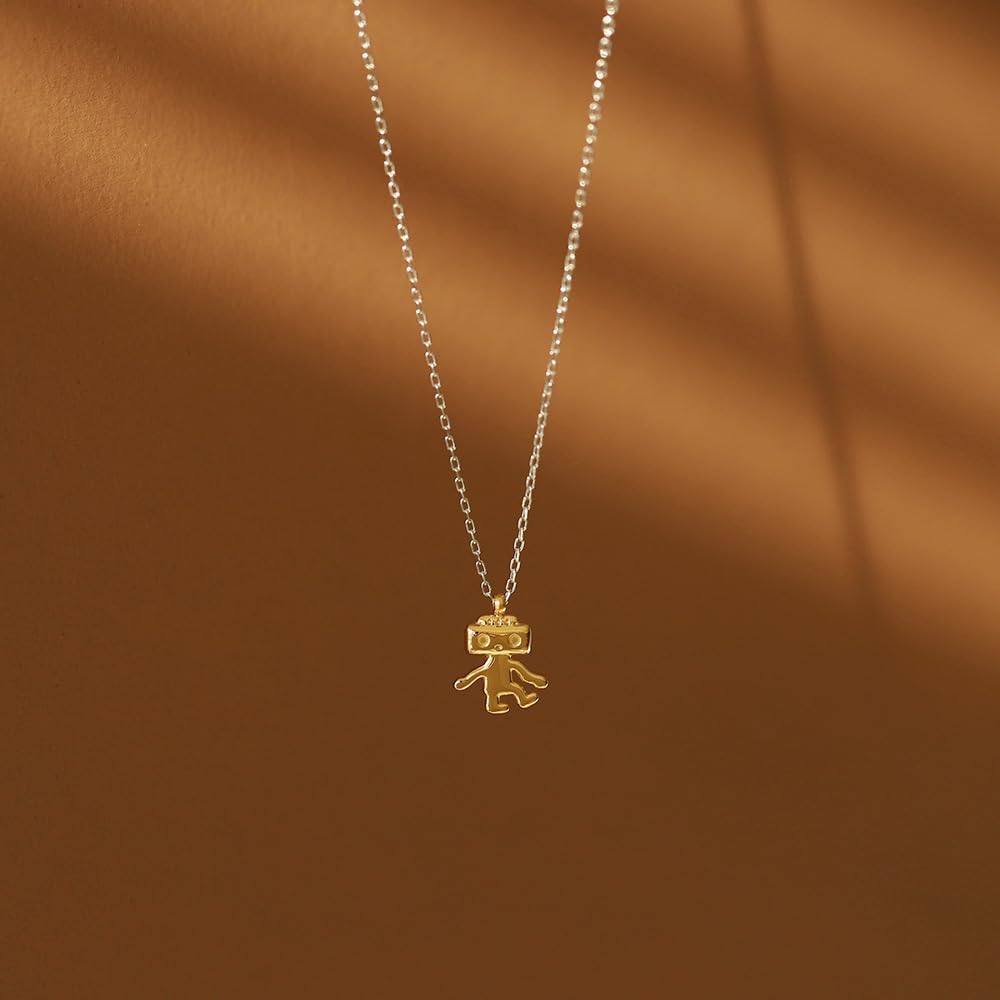 قلادة صغيرة بتصميم روبوت المشي من جيه اكس جي اكس بي، سلسلة من التيتانيوم الصلب المطلي بالذهب عيار 18 قيراط، مجوهرات تحافظ على اللون، 16، زنك، زركونيا مكعب, الزنك, مكعب زركونيا