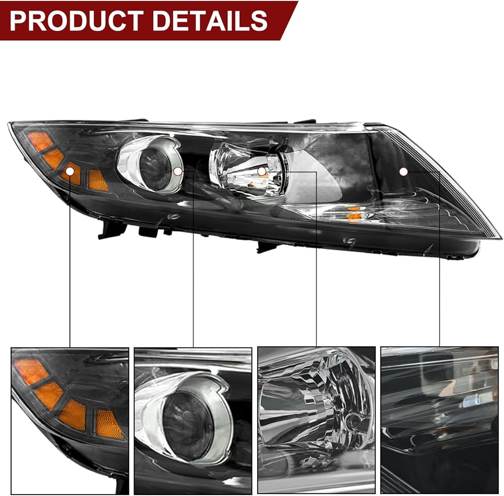 مجموعة الأمامي المتوافقة مع 2011 2013 2013 Kia Optima Halogen مع سائق استبدال المصابيح وجانب الراكب
