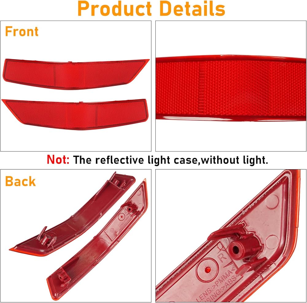 【المواد المتميزة】 إسكان عاكسات المصد الخلفي المصنوع من مواد بلاستيكية عالية الجودة ، دائمة وطويلة الأمد. القطعة الحمراء الخفيفة العاكسة ، فهي لا تنتج الضوء ، ولكنها تعكسها فقط. البلاستيك على الجزء الأحمر الذي يحتفظ بالضوء المعزول ، لا تميل إلى الإضاءة ، حيث تُعرف الإضاءة على الطريق ، حيث تُعرف الإضاءة على الطرف. المركبات.