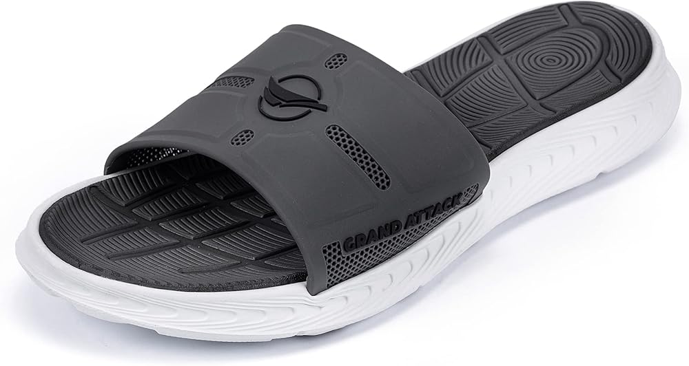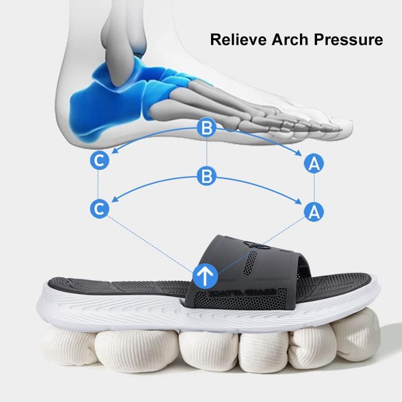 【توصيل سريع】 شرائح Grand Attack للرجال مع دعم مريح لقوس القدم، صنادل رياضية لتقويم العظام مفتوحة عند الأصابع ووسادة سميكة تقلل الضغط على القدمين، شرائح رياضية مضادة للانزلاق للرجال في الأماكن المغلقة والخارجية
