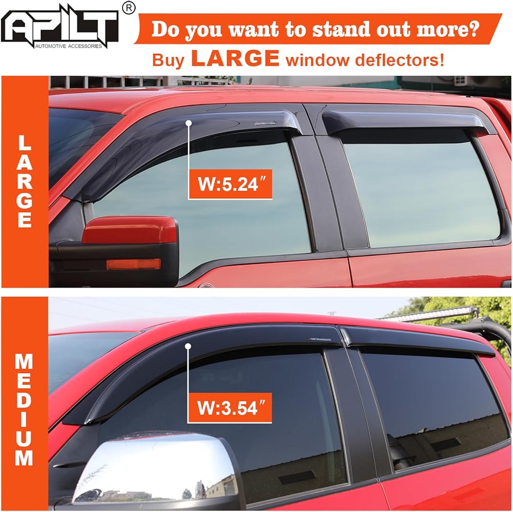 【يتيح لك Designapilt displectors النافذة السميكة عملية تنحرف بسهولة على النوافذ على أشعة الشمس ، وأيام ممطرة ، ثلجية ورياح ، تستمتع بالهواء النقي مع الحفاظ على داخل السيارة من كل من الطقس. في الحياة اليومية ، سيعزز هذا الملحق التلقائي قابلية الاستخدام وراحة شاحنة الالتقاط الخاصة بك.