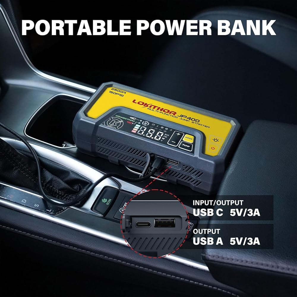 • JP400 Jump Starter هي أداة طوارئ للسيارات متعددة الوظائف ، والتي تدمج بداية قوية 2500A قادرة على بدء تشغيل مركبات 12 فولت حتى 8.5 لتر من محركات الديزل 6.5 لتر على الفور ، حتى في درجات الحرارة القصوى من -4 درجة فهرنهايت إلى 140 درجة فهرنهايت. تم تصميم جميعها في عامل شكل صغير بشكل ملحوظ أكثر من 45 ٪ من مبتدئين القفز المعياري مع الحفاظ على قدرة الأداء الكاملة لكل وظيفة فردية.
