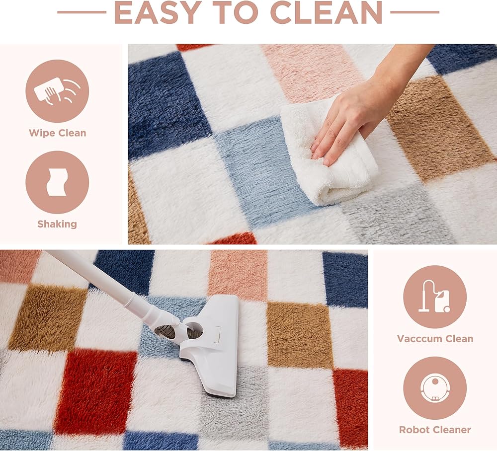 سهل التنظيف: تم تصميم السجادة لسهولة الصيانة. يمكن مسحها بقطعة قماش أو فراغ مع جهاز منخفض الطاقة. بدلاً من ذلك ، يمكن اهتزازه بالخارج أو غسله بالماء البارد ومعدلات معتدلة باليد