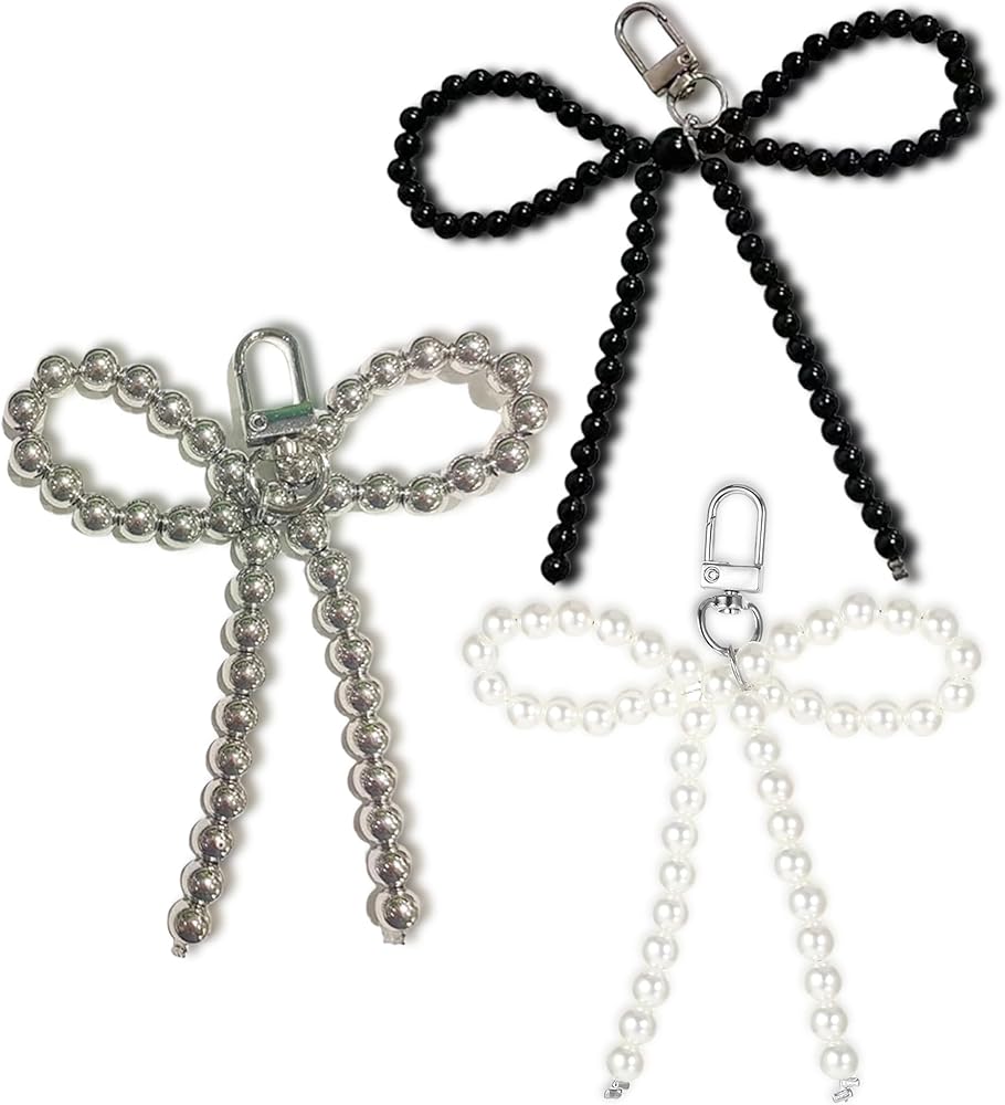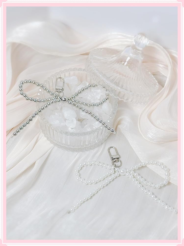 💓【 التصميم】 ستحصل على سحر مفاتيح قلادة الفضة من اللؤلؤ وسحر سلسلة مفاتيح القوس الأبيض. سيجعل مفاتيحك فريدة من نوعها وتضيف لمسة أنيقة وأنيقة لك.