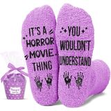 جوارب الأفلام: تتميز هذه الجوارب ذات الغشاء الوردي بمقولة مضحكة، "يرجى عدم إزعاج أنا أشاهد الأفلام" وهي مزينة بلوحة شاشة، مما يجعلها الهدية المثالية التي تحمل طابع الفيلم لنفسك أو لأي شخص يحب مشاهدة الأفلام!