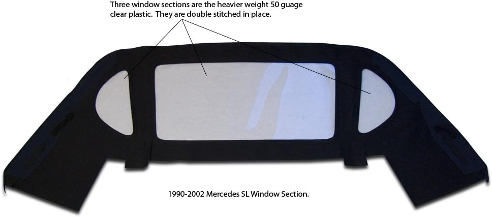 This Mercedes 129 chassis convertible top is made as original with 3 sewn in windows using patterns and specifications to the original vehicle. This includes German Classic canvas from Haartz Germany, which is a premium quality topping with 100% polyester dobby-weave lining fabric. Made with a hand-rolled binding as the original Mercedes. The topping material has a black interior backing color as original and includes vinyl piping around the rear windows also just like the original. The craftsmanship and careful detailing is evident throughout this convertible top. After thousands of successful installations, we are confident that this convertible top will fit Mercedes-Benz SL convertible right out of the box and if your professional installer cannot fit this to your vehicle, we will either replace it at no charge or give you a full refund, including shipping. This item fits these 1990 through 2002 models: 300SL, 500SL, 600SL, SL280, SL320, SL500, SL600 convertibles.