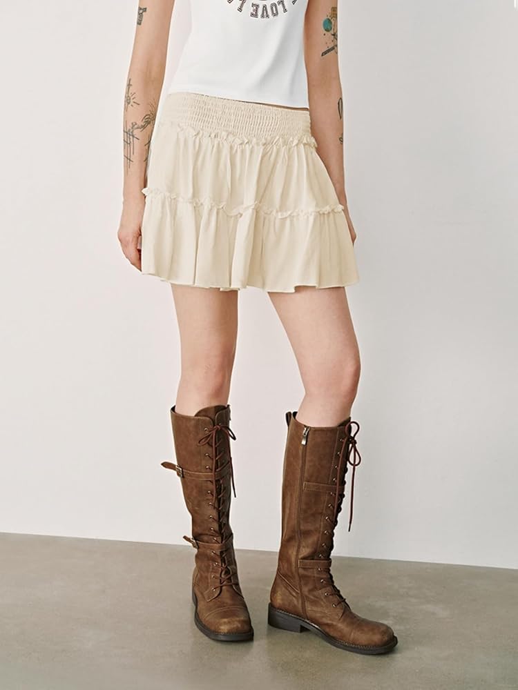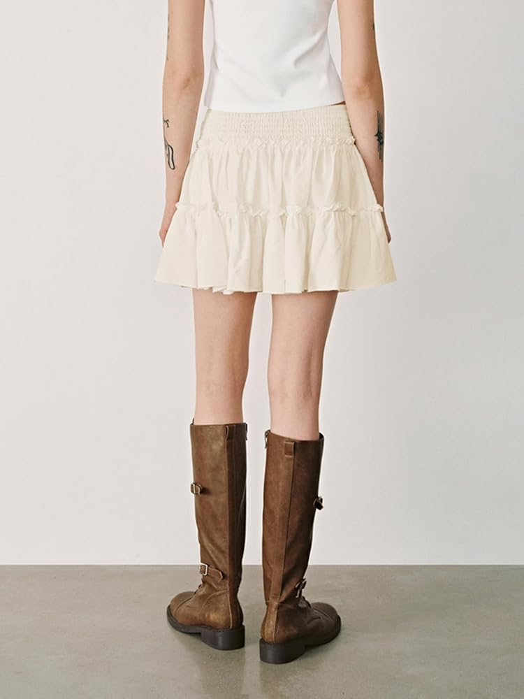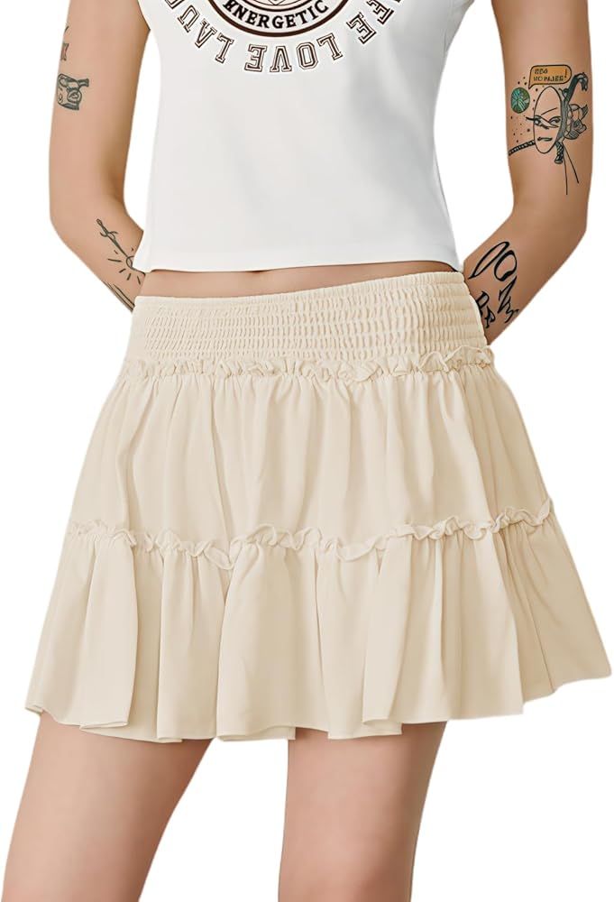 Cute Design:These flowy skorts are featured with built-in shorts, high waisted, shirred smocked elastic waistband, pleated ruffle detail,all-in-one fit, shorty-length
