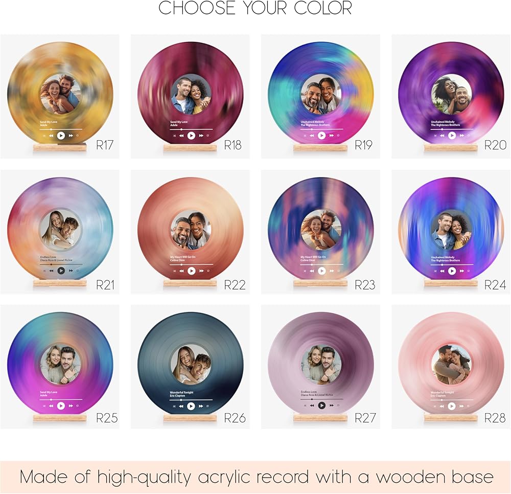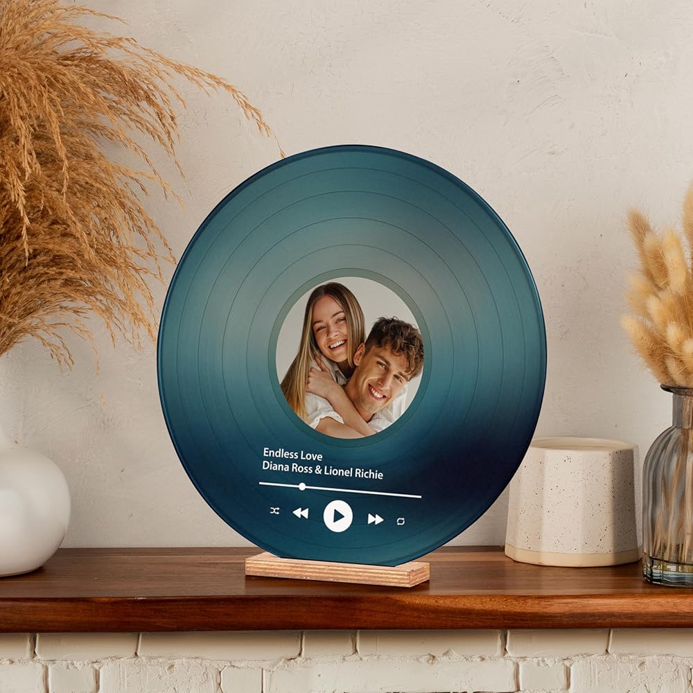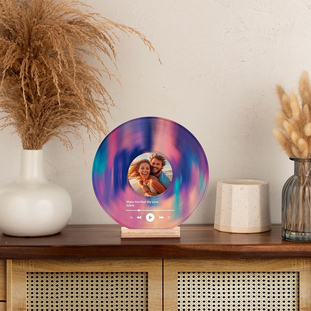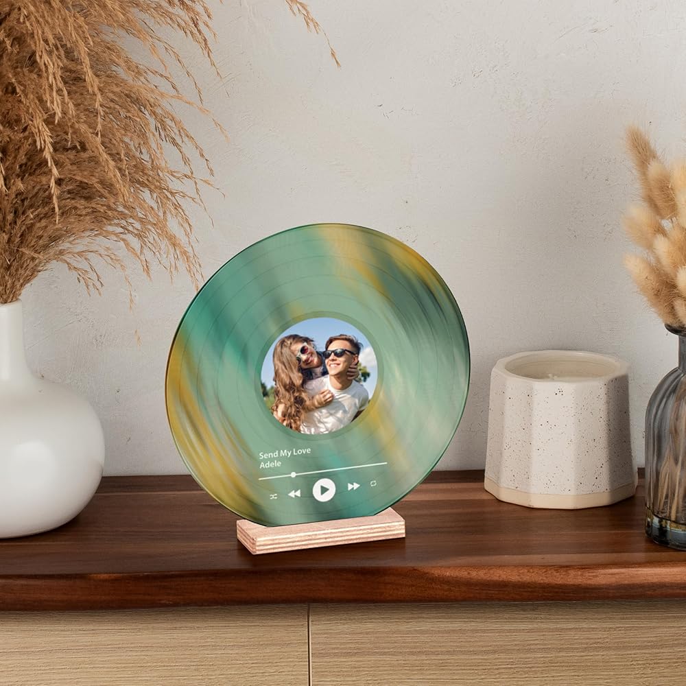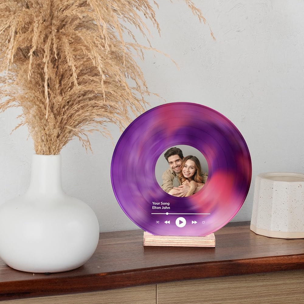 Personalized Vinyl Record Decorative Sign: Customize this high-quality acrylic vinyl record with your favorite photo, song name, and singer's name. A sentimental keepsake perfect for couples, best friends, or music lovers who cherish their favorite song together. Not a real vinyl record, but a beautiful decorative piece.
