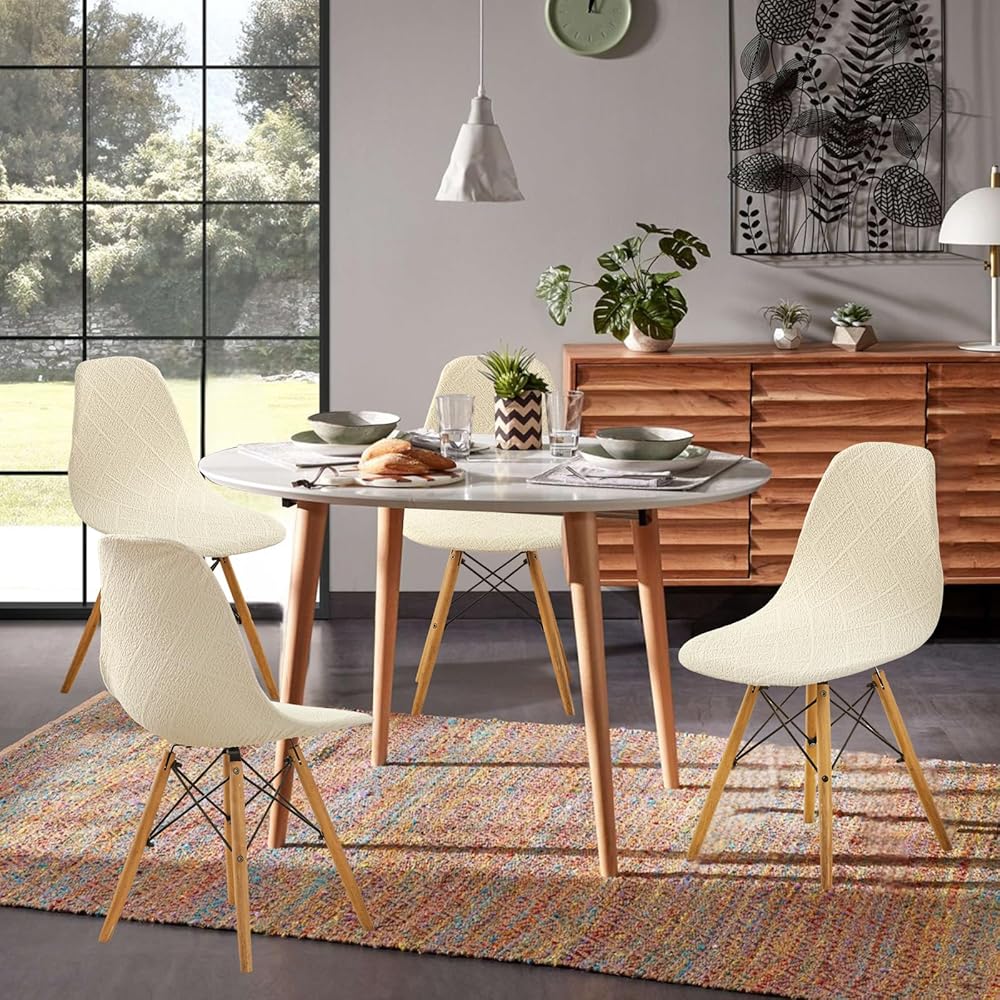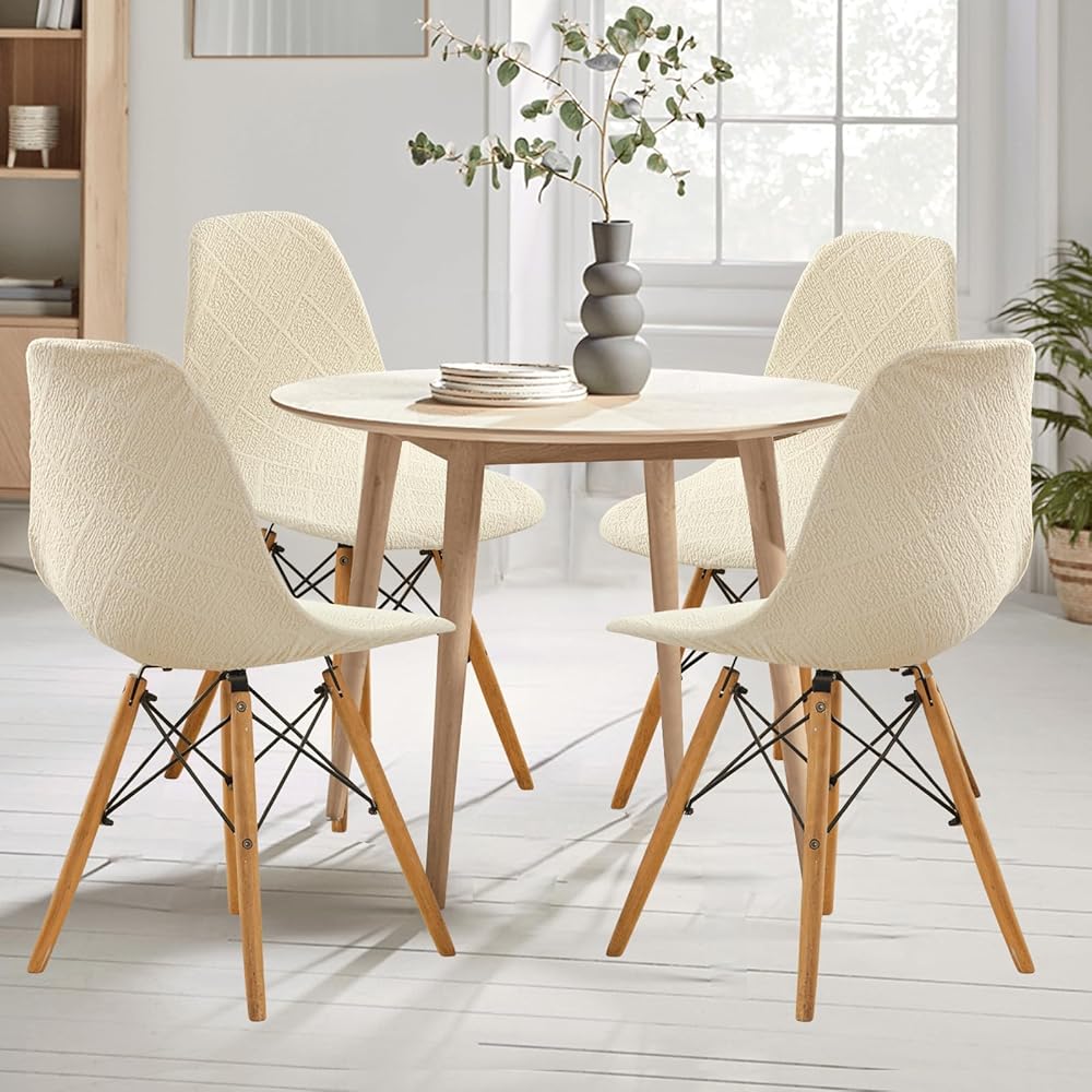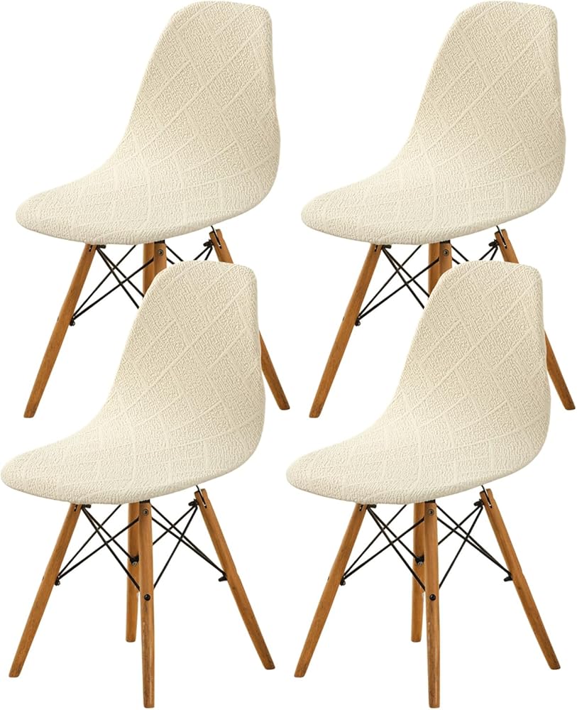 أغطية كرسي الطعام مجموعة من 4 ، منتصف القرن ، كرسي غرفة الطعام الحديثة يغطي غطاء كرسي جاكار قذيفة ، والكرسي غير القابل للذراع المطبخ للمطبخ ، والمكتب ، وغرفة الطعام ، وغرفة المعيشة
