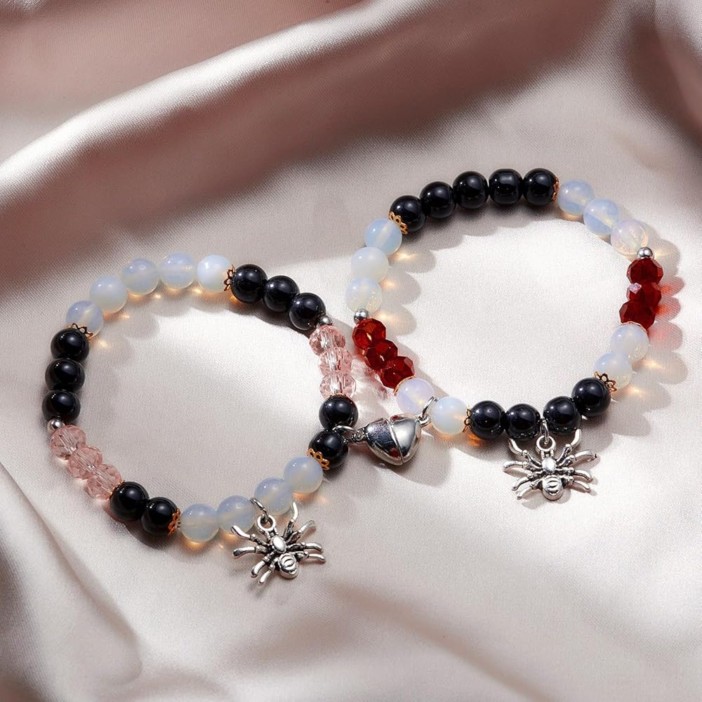 👩❤️👩أساور الصداقة👩❤️👩 سوار العنكبوت هذا مصنوع يدويًا من الخرز الطبيعي والعناكب ويأتي مع سوارين في مجموعة واحدة، مثالي للأزواج أو أفضل الأصدقاء. تم تعديله ليناسب مقاسات المعصم المختلفة، فلا داعي للقلق بشأن كونه ضيقًا جدًا أو فضفاضًا جدًا.