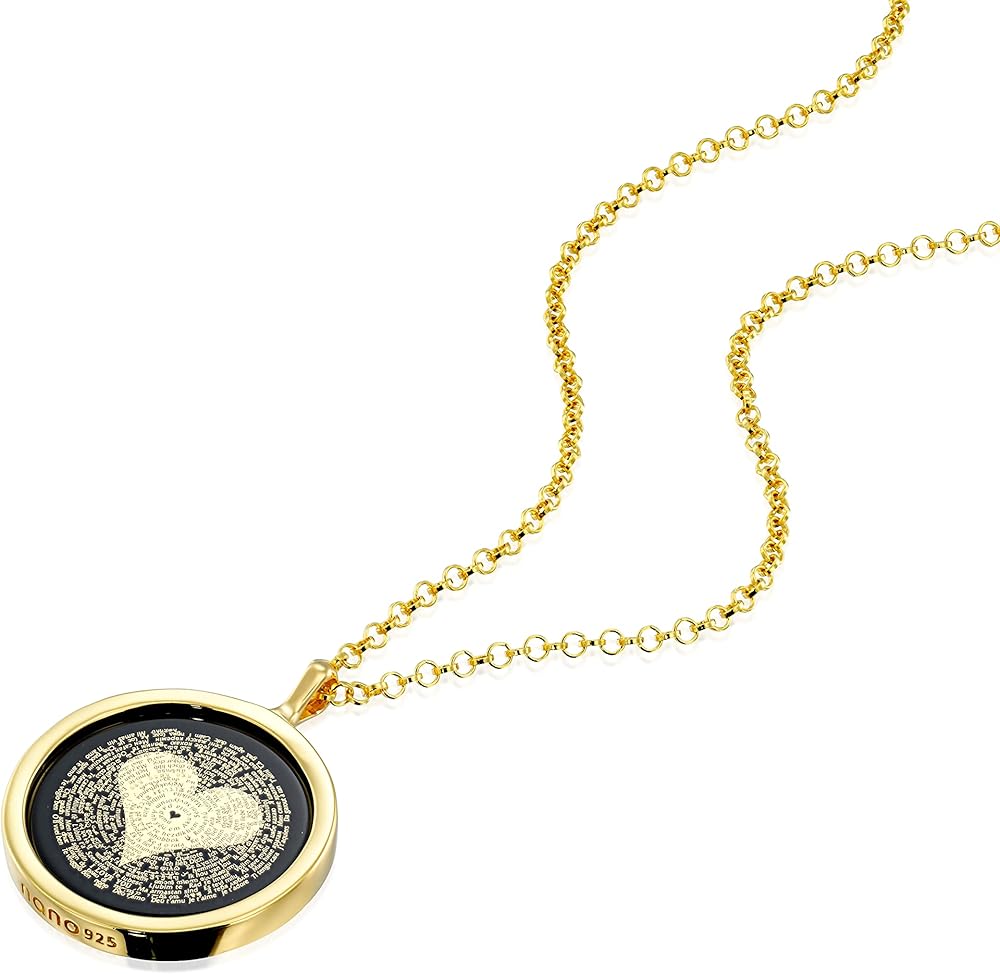 • قلادة أنا أحبك منقوشة بالذهب عيار 24 قيراط على حجر كريم من العقيق. طقم من الفضة عيار 925 (0.9 × 1.15 بوصة). قلادة فريدة وأنيقة وذات مغزى. يتم تعليقه من سلسلة رولو فضية عالية الجودة مقاس 18 بوصة، صناعة إيطالية. معبأة في صندوق هدايا، جاهزة لتقديمها كهدية
