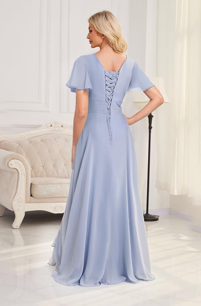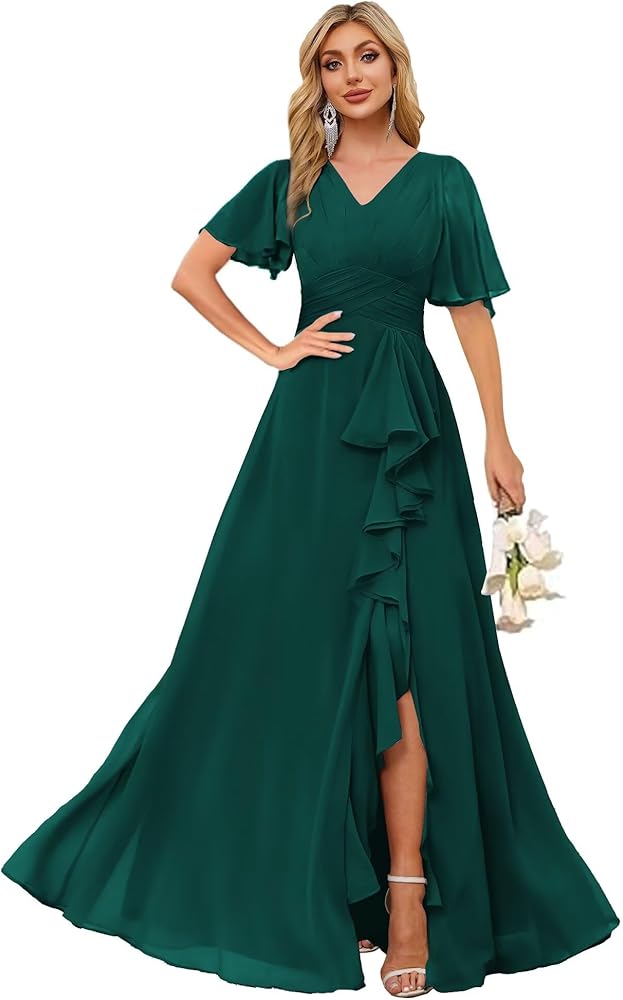 • ميزة اللباس: V فساتين وصيفات الشيفون مع الأكمام 2025 ، الرقبة الخامس ، الشيفون ، المطوي ، الأكمام القصيرة ، الكثش ، الحزام ، شق جانبي ، الدانتيل إلى الظهر ، بنيت في حمالة الصدر.