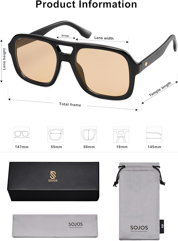 [تصميم طيار أنيق] تتميز هذه النظارات الشمسية SOJOS بإطار جسر مزدوج متعدد الاستخدامات بما يكفي لتتناسب مع أي شكل للوجه. احتضن شخصيتك مع هذه الظلال الأنيقة التي تمزج العناصر الكلاسيكية والرائعة. مع المزيج المثالي من الشكل والوظيفة ، فإن هذه النظارات الشمسية أمر لا بد منه لأي فرد للأزياء.