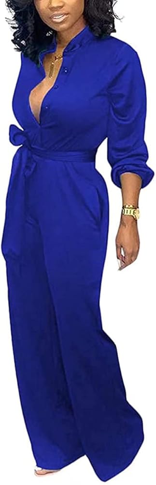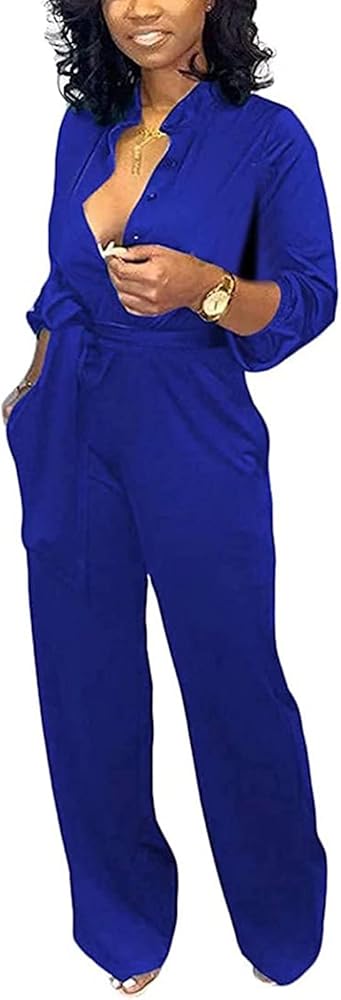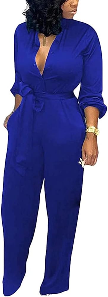- بدلة قطعة واحدة للسيدات بأكمام طويلة وزر واحد للأسفل وبنطال بأرجل واسعة وسروال قطعة واحدة بدلة لعب مقاس كبير