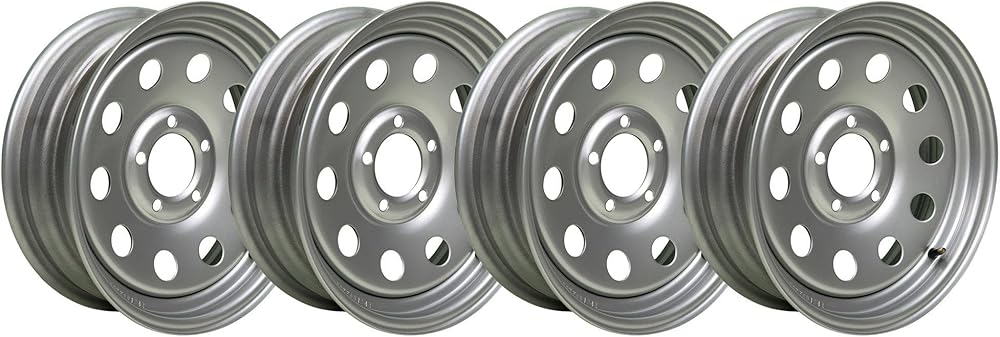15" x 5", Silver Modular, 1870 lb weight capacity at 50 psi, Fits 1/2" studs, 0 offset, Pilot diameter is 3.19", Meets DOT specifications, Color: Silver/Gray Finish