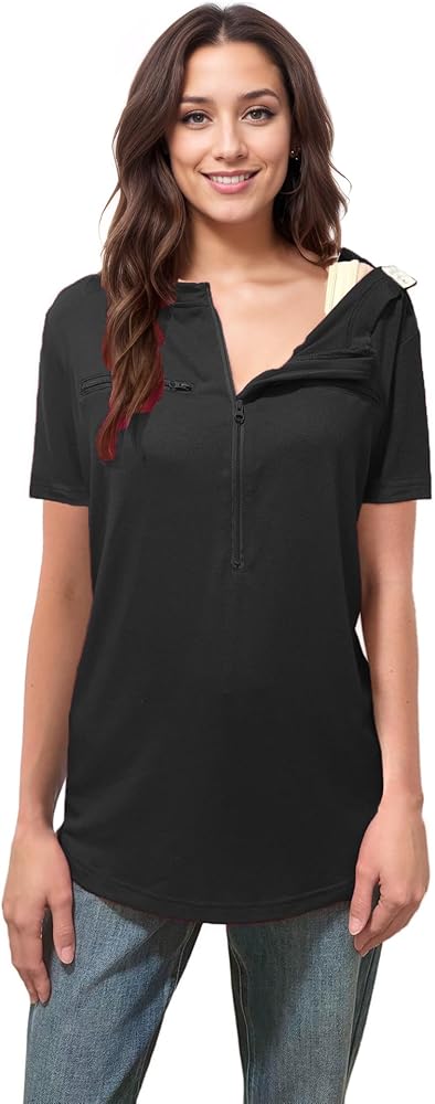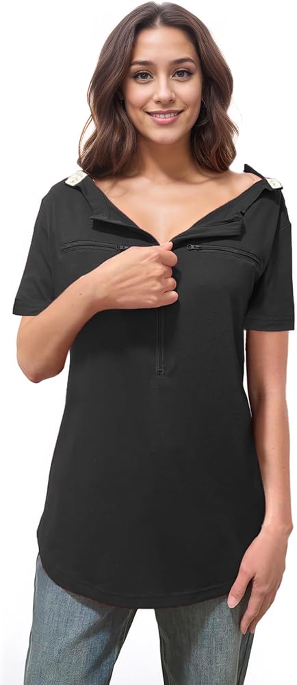 تصميم Triple-Zipper المبتكر: يقدم قميصنا نظامًا فريدًا ثلاثيًا من ثلاثية Zipper. يفتح سحاب منتصف الصرمة على نطاق واسع على كلا الجانبين لتغيير التضمين وتغيير الملابس.