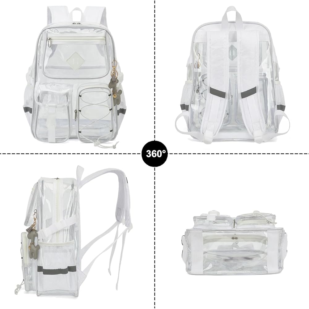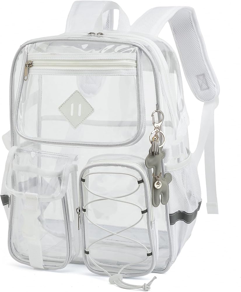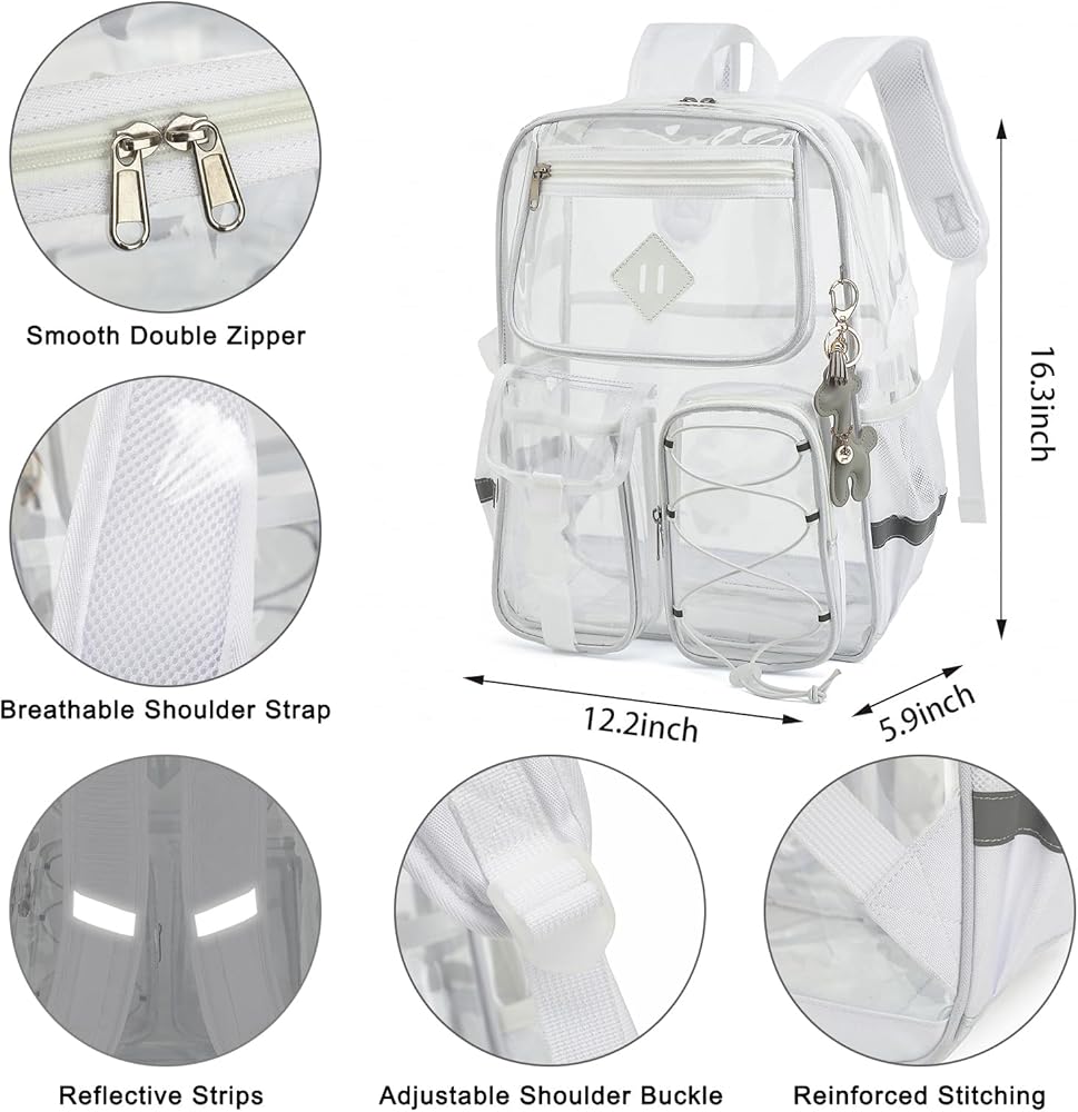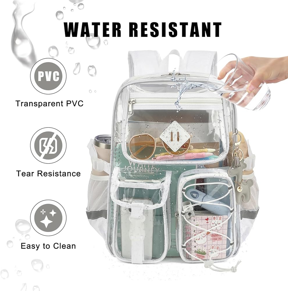 المواد: حقيبة الظهر الشفافة تأتي مع خياطة معززة في PVC متينة ، مقاومة للماء وسهلة التنظيف ؛ عند التمطر ، لا داعي للقلق بشأن رطب ممتلكاتك ؛ عندما تتسخ حقيبتك ، تحتاج فقط إلى مسحها بخفة بقطعة قماش.