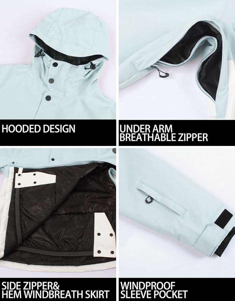مقاوم للماء ومقاوم للرياح: تبلغ درجة المقاومة للماء 15000 مم ، مع طلاء مهني مقاوم للماء لتجنب المطر والثلوج ؛ تتمتع سترة التزلج المقاومة للبلى والمريحة مقاومة للرياح وتوفر لك الدفء الكافي ؛