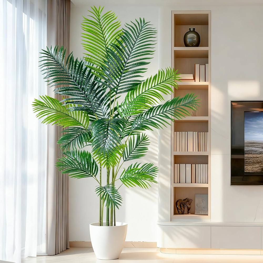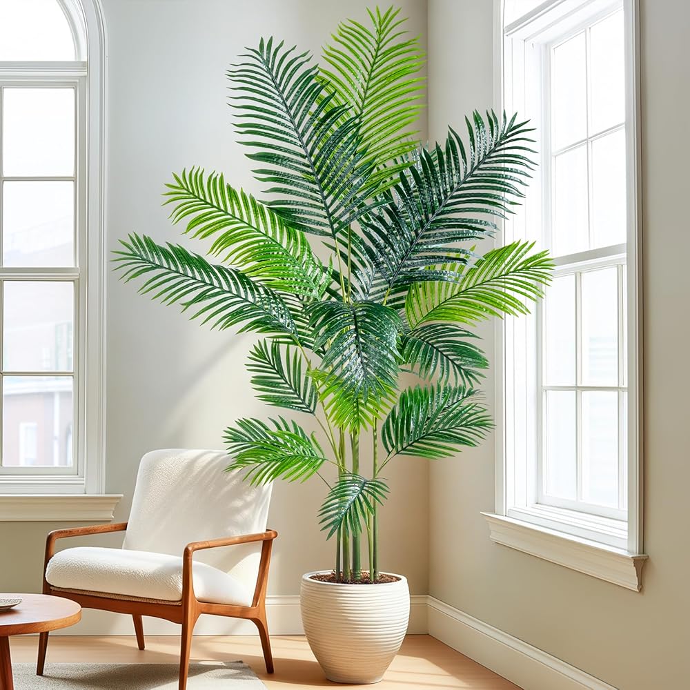 6.6ft مصطنعة أريكا النخيل النخيل النابض بالعيش ، فو ، نبات أريكا ، نبات ، مصنع طويل من الحرير مصطنع كبير للمنزل الداخلي ديكور ركن غرفة المعيشة (لا زارع)