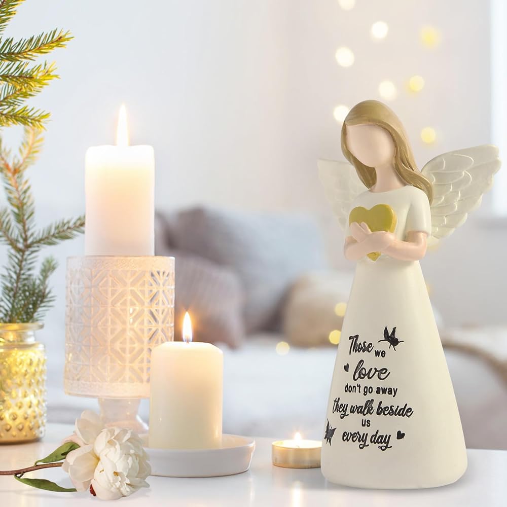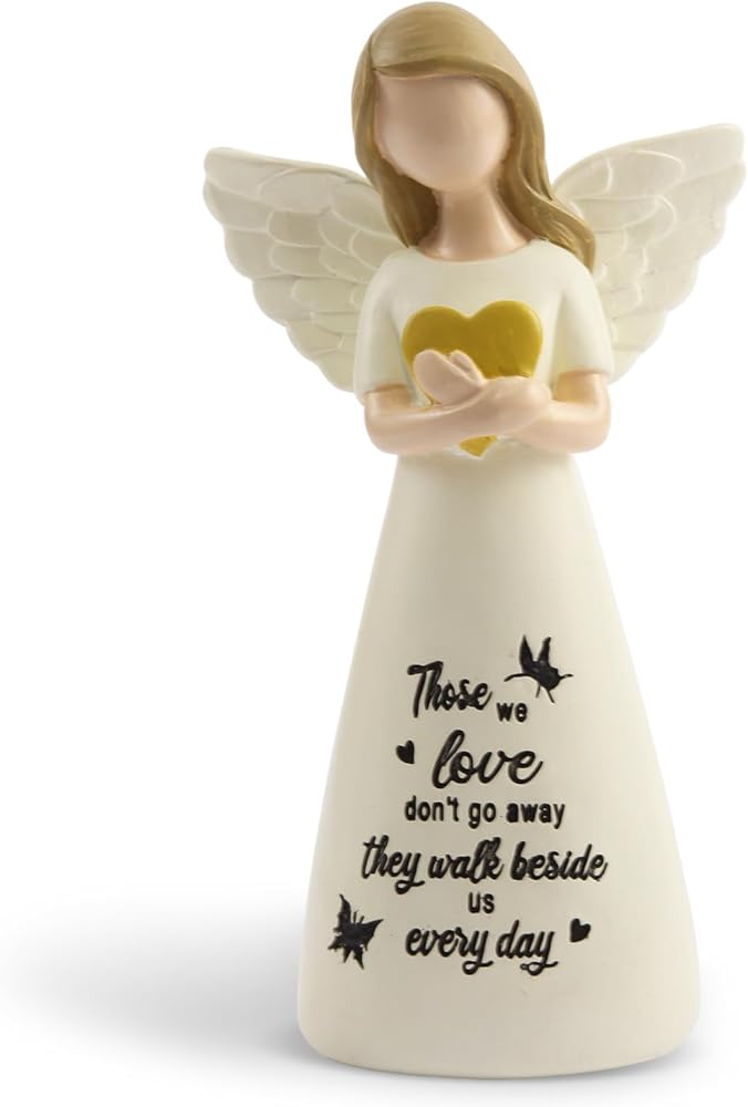 هدايا تذكارية ذات مغزى : "أولئك الذين نحبهم لا يذهبون بعيدًا ، يسيرون بجانبينا كل يوم" مكتوبة على تمثال ملاك التذكاري الصلاة. هدية تذكارية للراحة وتشجيع الأمل والشفاء