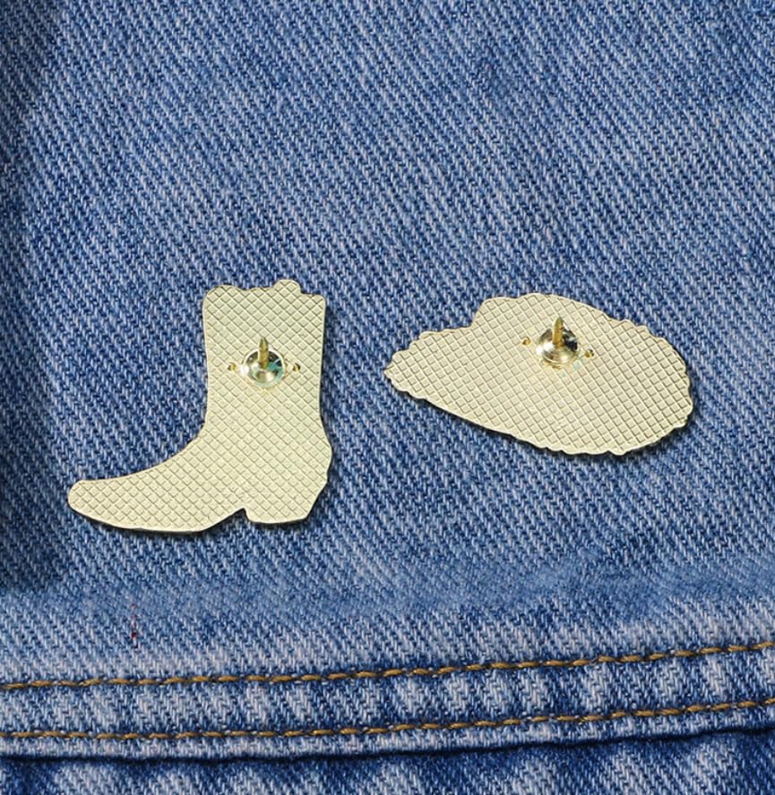 Whether you're a cowboy enthusiast or simply looking for a distinctive piece of jewelry to express your individuality, our 2-piece set of Cowboy Hat and Boots pins is the perfect choice.