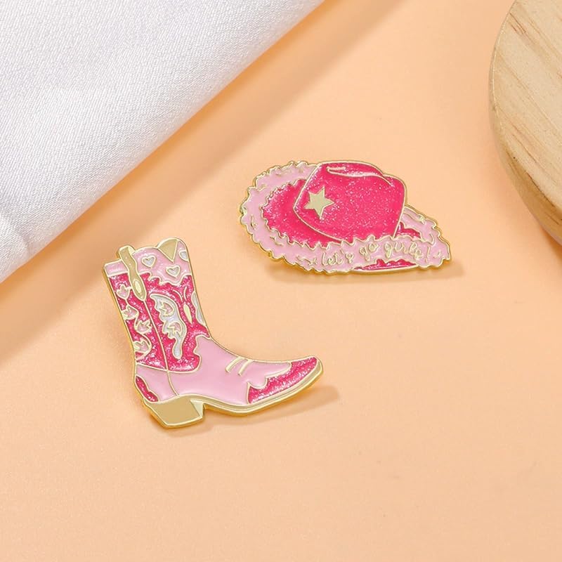 Introducing our 2Pcs Cowboy Hat Cowboy Boots Enamel Pin Set, an exquisite addition to any jewelry collection.