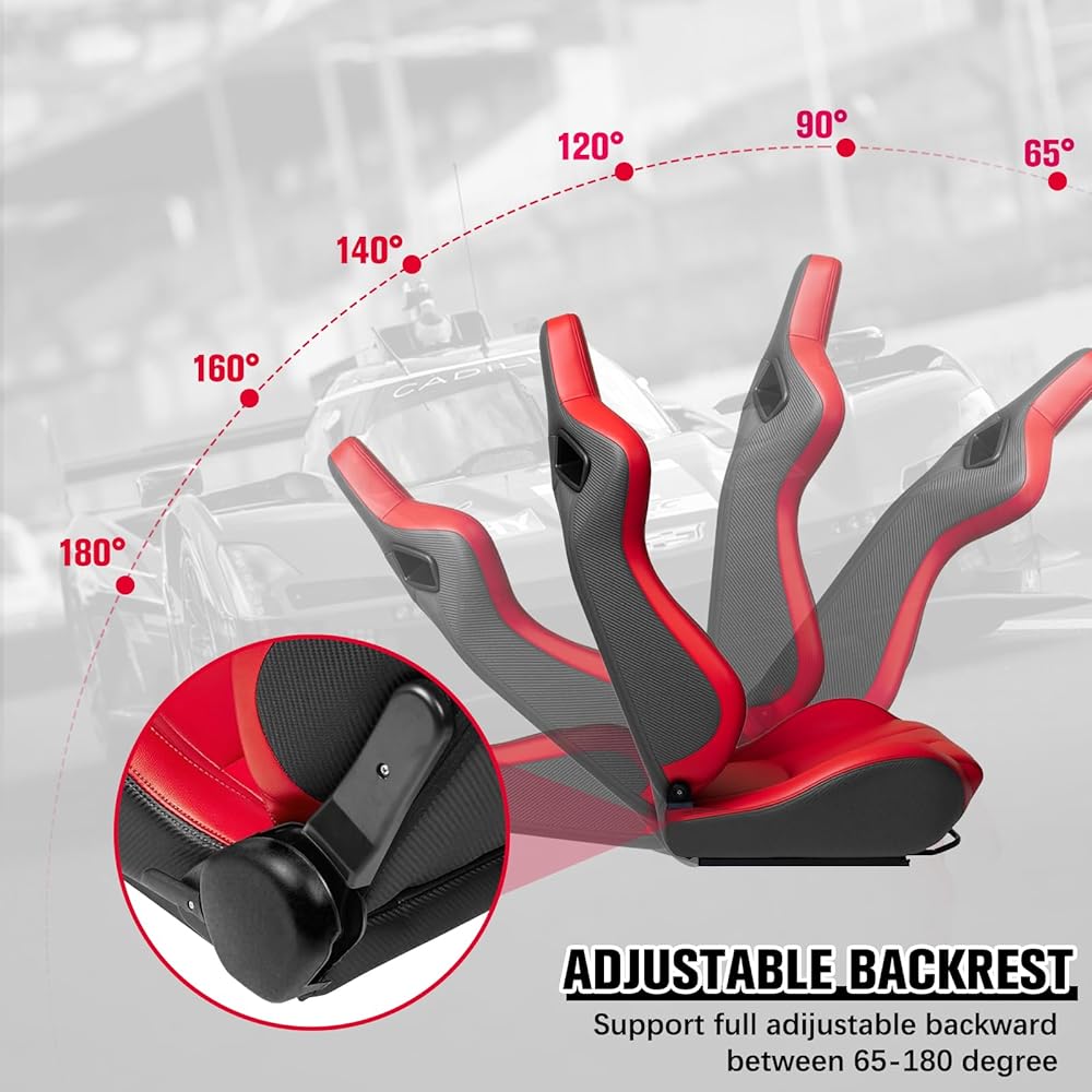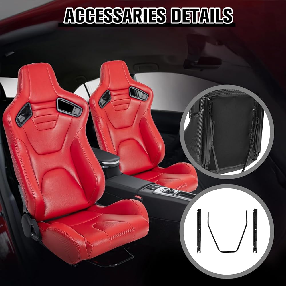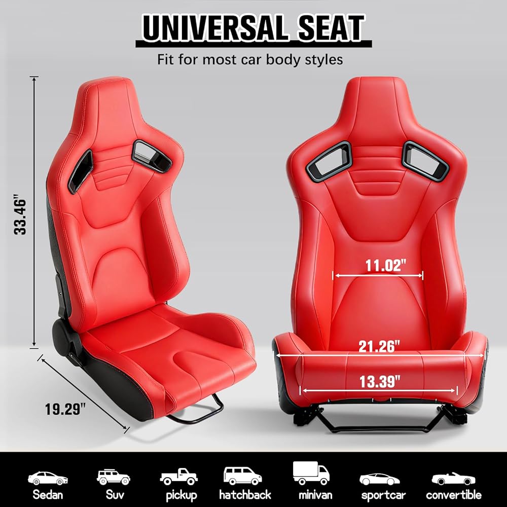 محتوى التغليف: ستتلقى مقعدين للسباق (باستثناء أقواس التثبيت المطلوبة للتثبيت) ، وستحتاج إلى توفير قوسين خاص بك. قبل الشراء ، يرجى مقارنة حجم المقعد مع المساحة الداخلية للسيارة