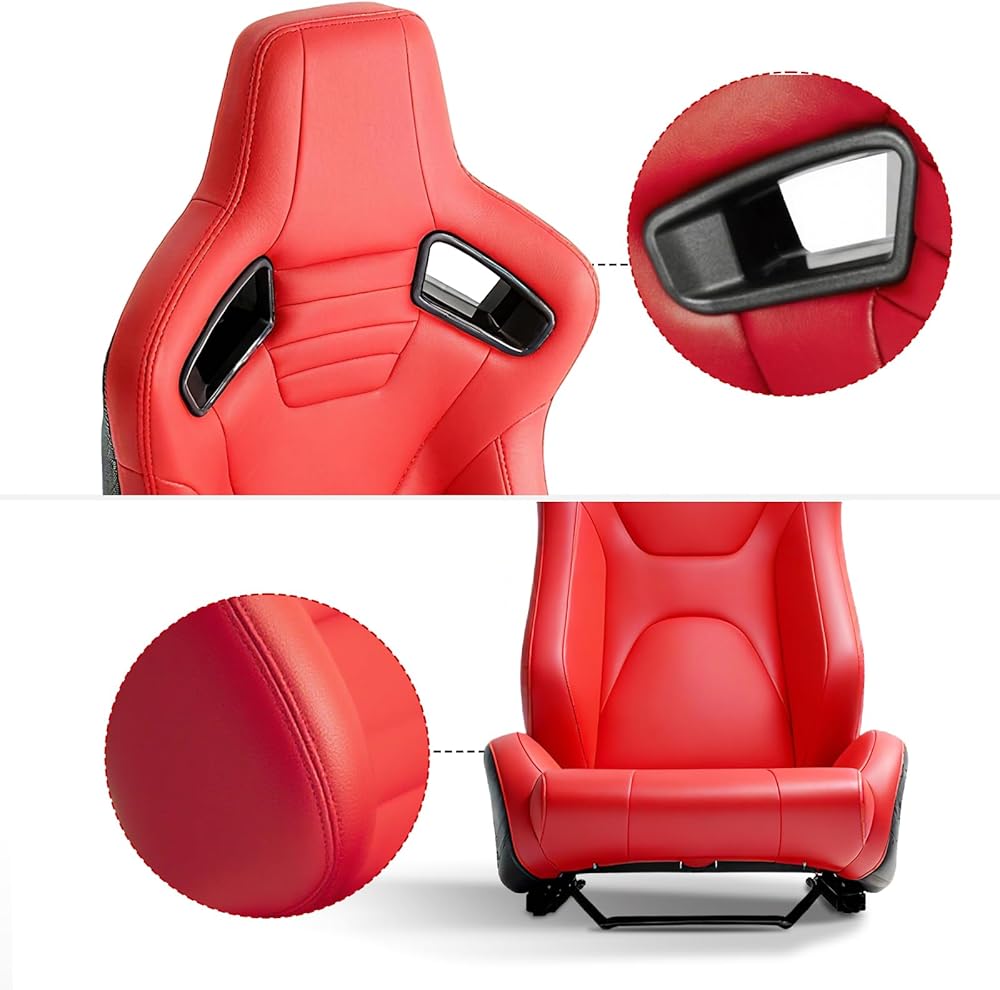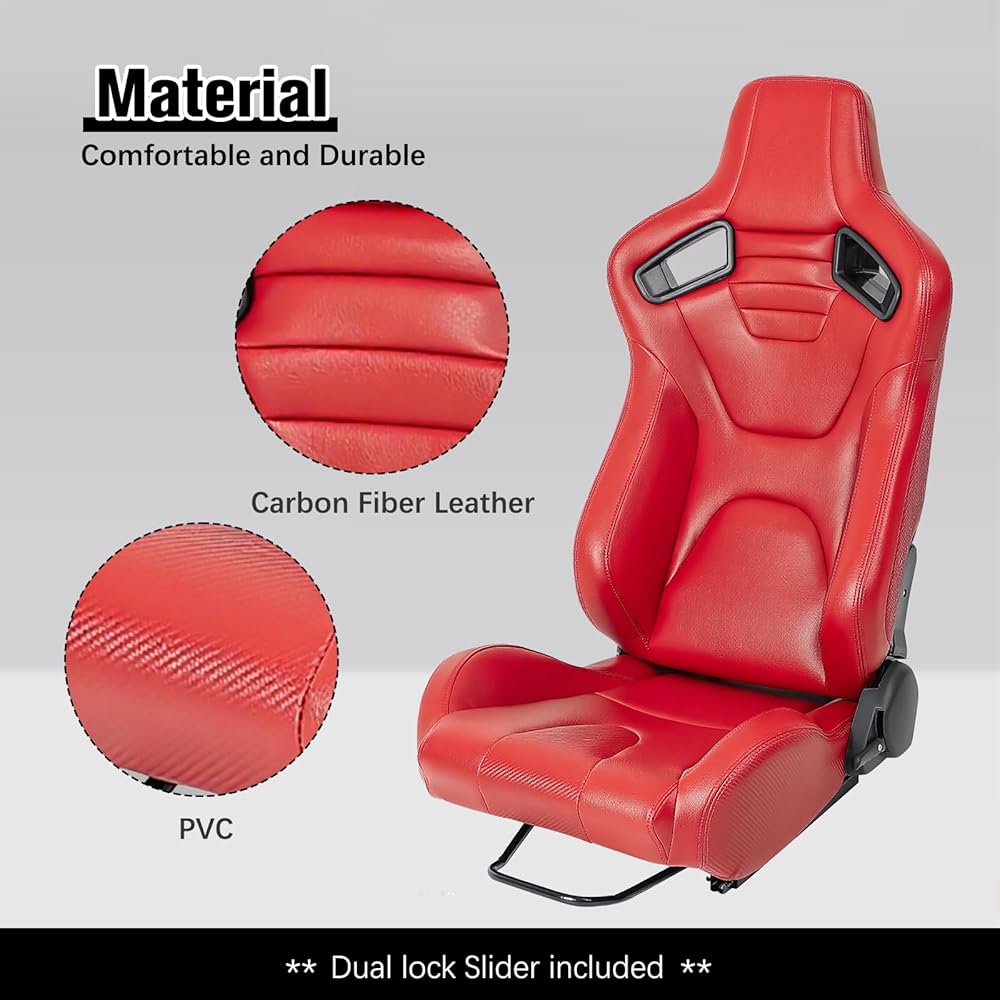 مواد عالية الجودة: يتم لف مقعد السباقات هذا بجلد PVC عالي الجودة ، وهو مقاوم للماء وسهل التنظيف ومقاوم للخدش ومقاوم للارتداء. مسند الظهر مصنوع من مادة جلد حبوب الكربون ، وهي متينة ومقاومة للبقع