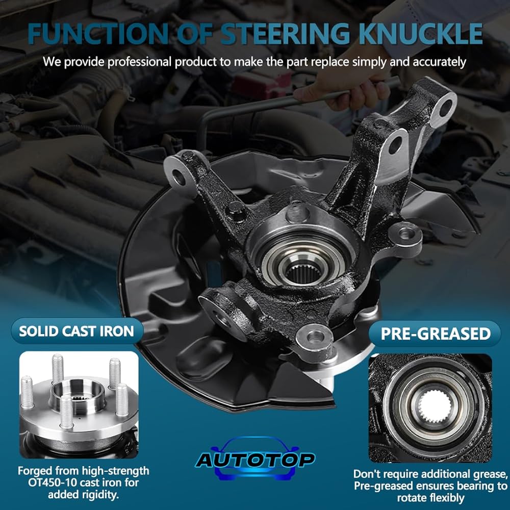 Fully Assembled & Ready to Install Pre-installed wheel hub and bearing included in the knuckle. Direct bolt-on solution—no need to press in the hub or bearing, saving installation time.